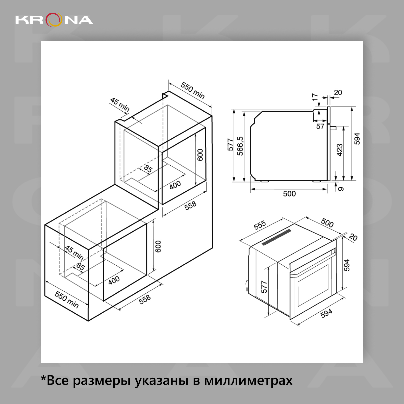 Духовой шкаф электрический встраиваемый 60 см KRONA PRONTO 60 S G2