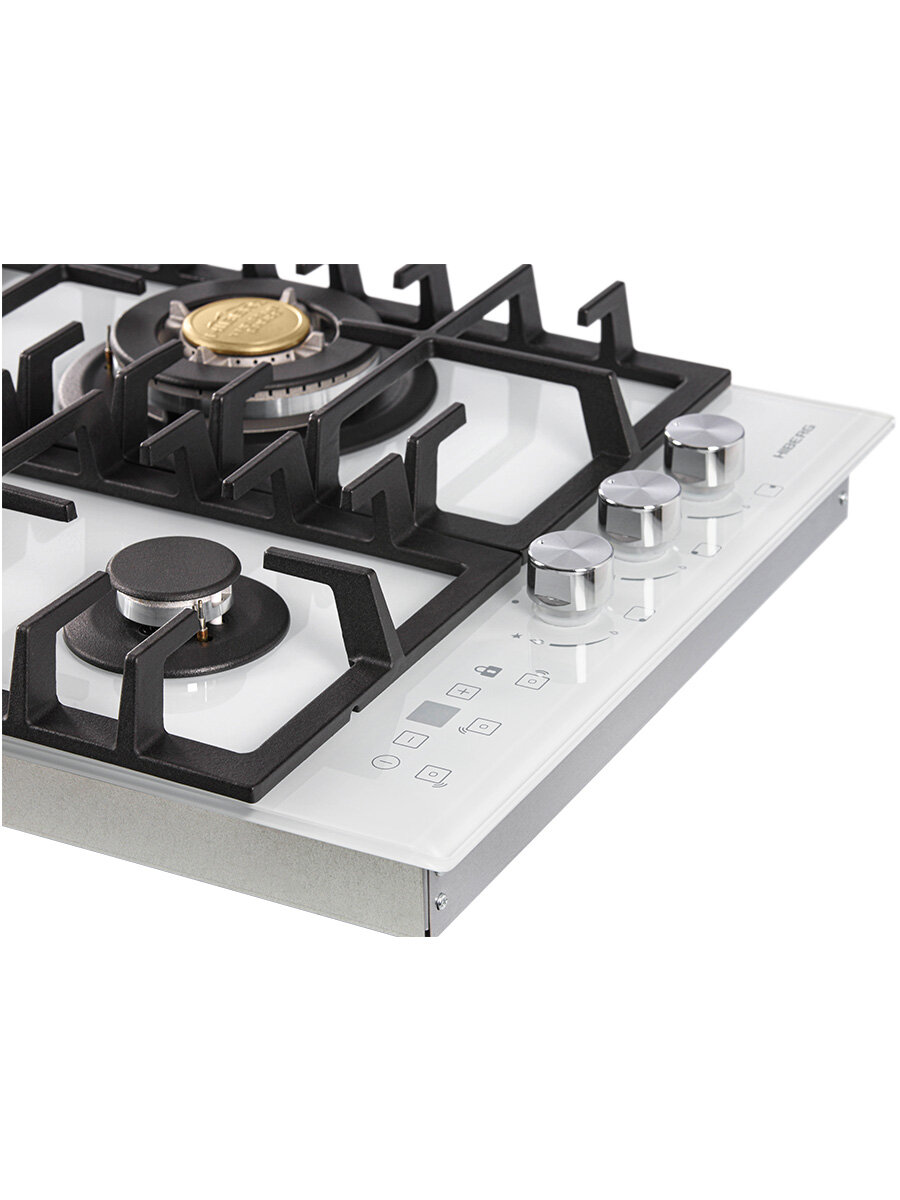 Встраиваемая газовая варочная поверхность HIBERG VM 4535 W из закаленного стекла в белом цвете