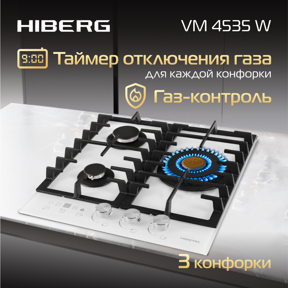Варочная панель газовая HIBERG VM 4535 W, белый
