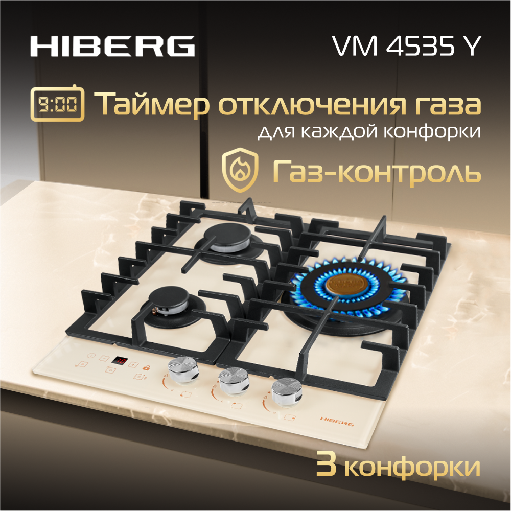 СохранитьГазовая варочная панель 45*51 HIBERG VM 4535 Y "Бежевое стекло" интересное: