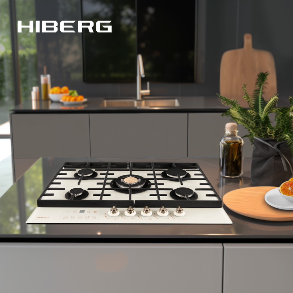 Встраиваемая газовая варочная поверхность HIBERG VM 7155 Y из закаленного стекла в бежевом цвете