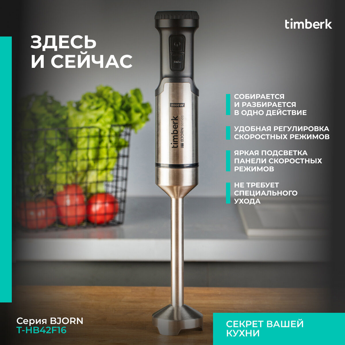 Блендер погружной Timberk T-HB42F16, TURBO режим, 2000 Вт