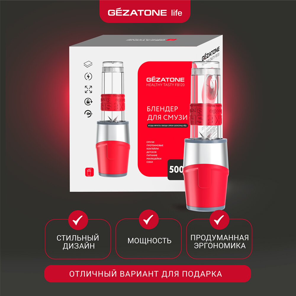 Портативный блендер для смузи с дорожной бутылкой FB120, 500 Вт, Gezatone