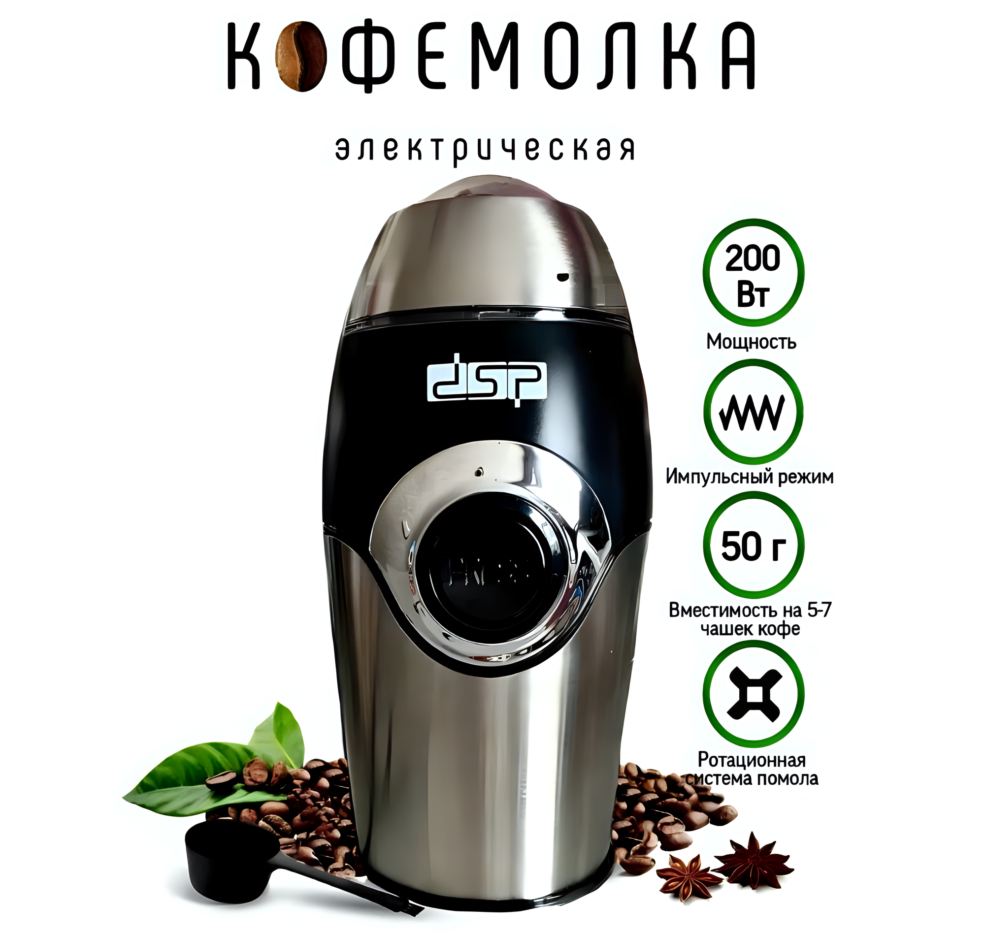 Кофемолка Matreshka, мощность 200Вт, система помола ротационный нож, серебристый, 50г интересное: