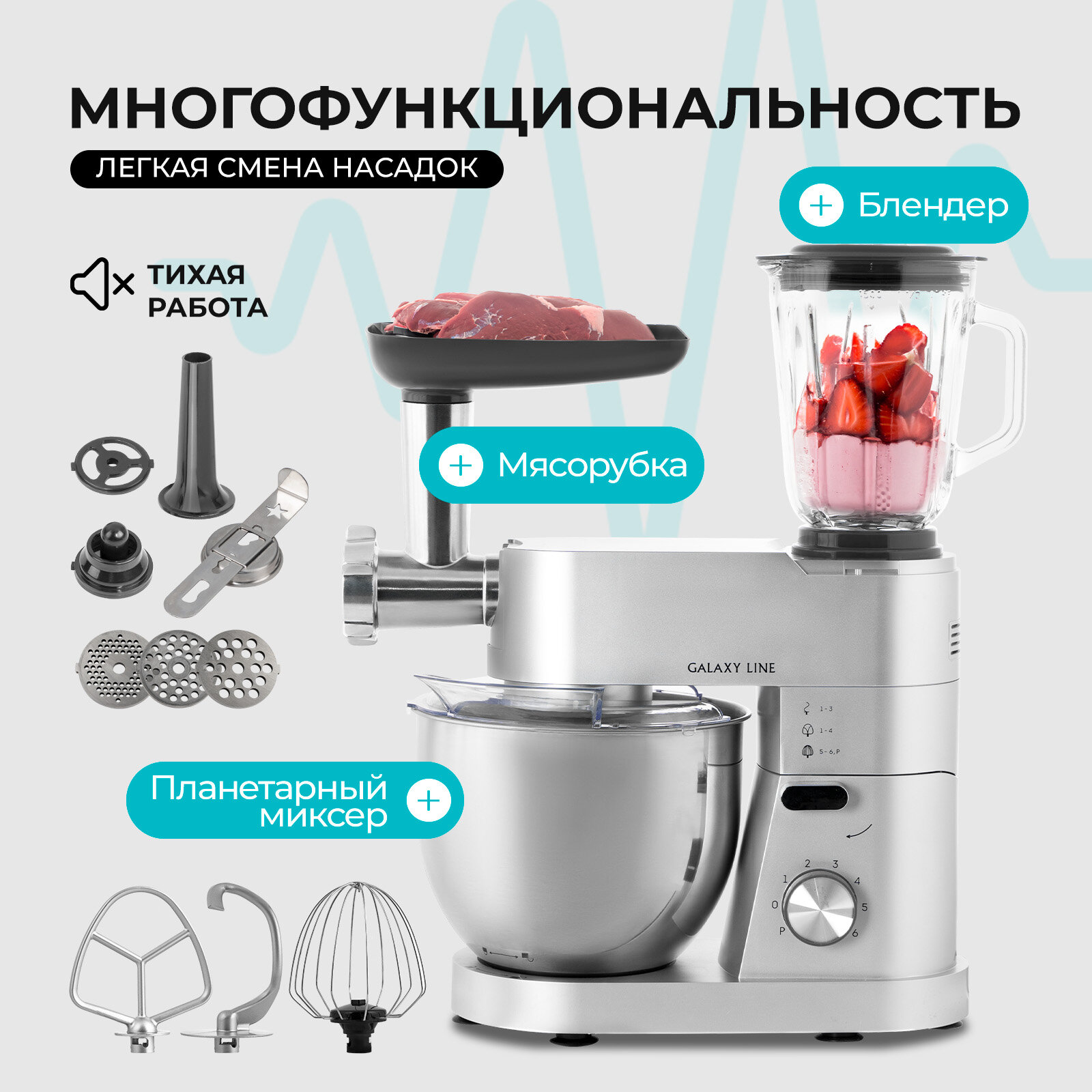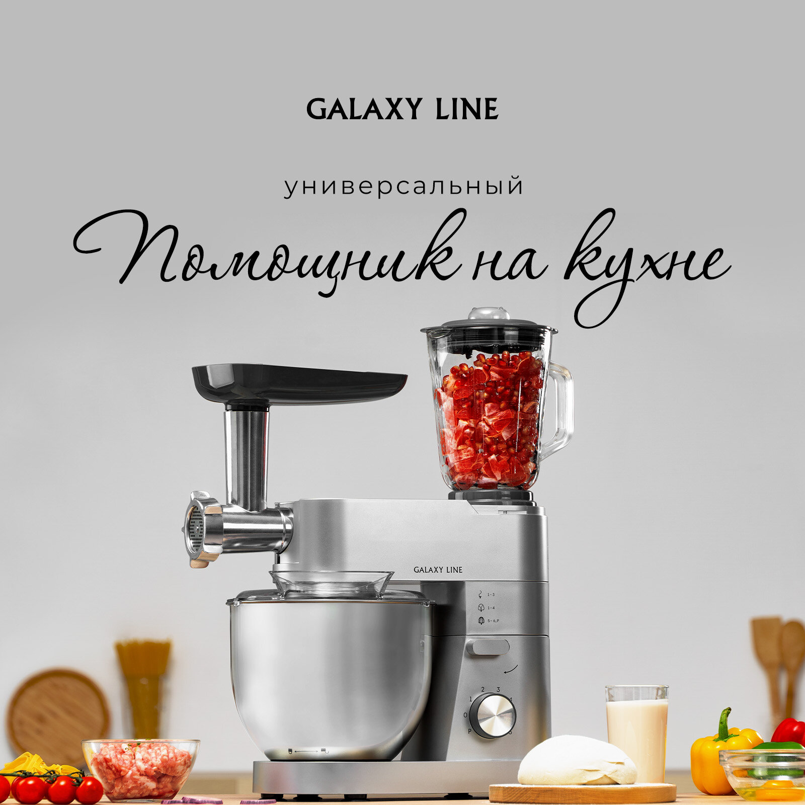 | Дополнительная информация | Кухонная машина GALAXY LINE – это практичное устройство "3 в 1" |