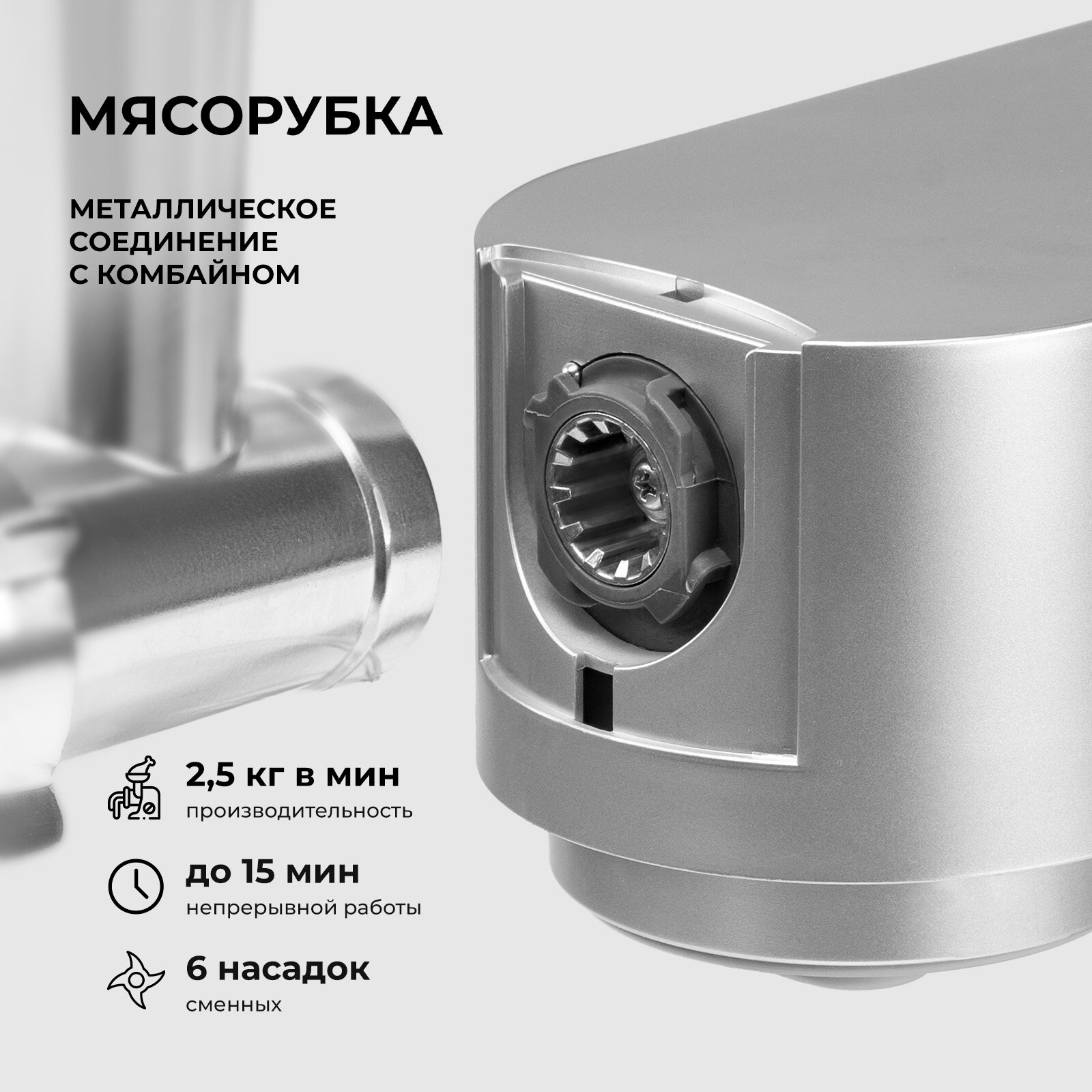 | Дополнительные насадки | для кеббе / для колбасок / для нарезки соломкой |