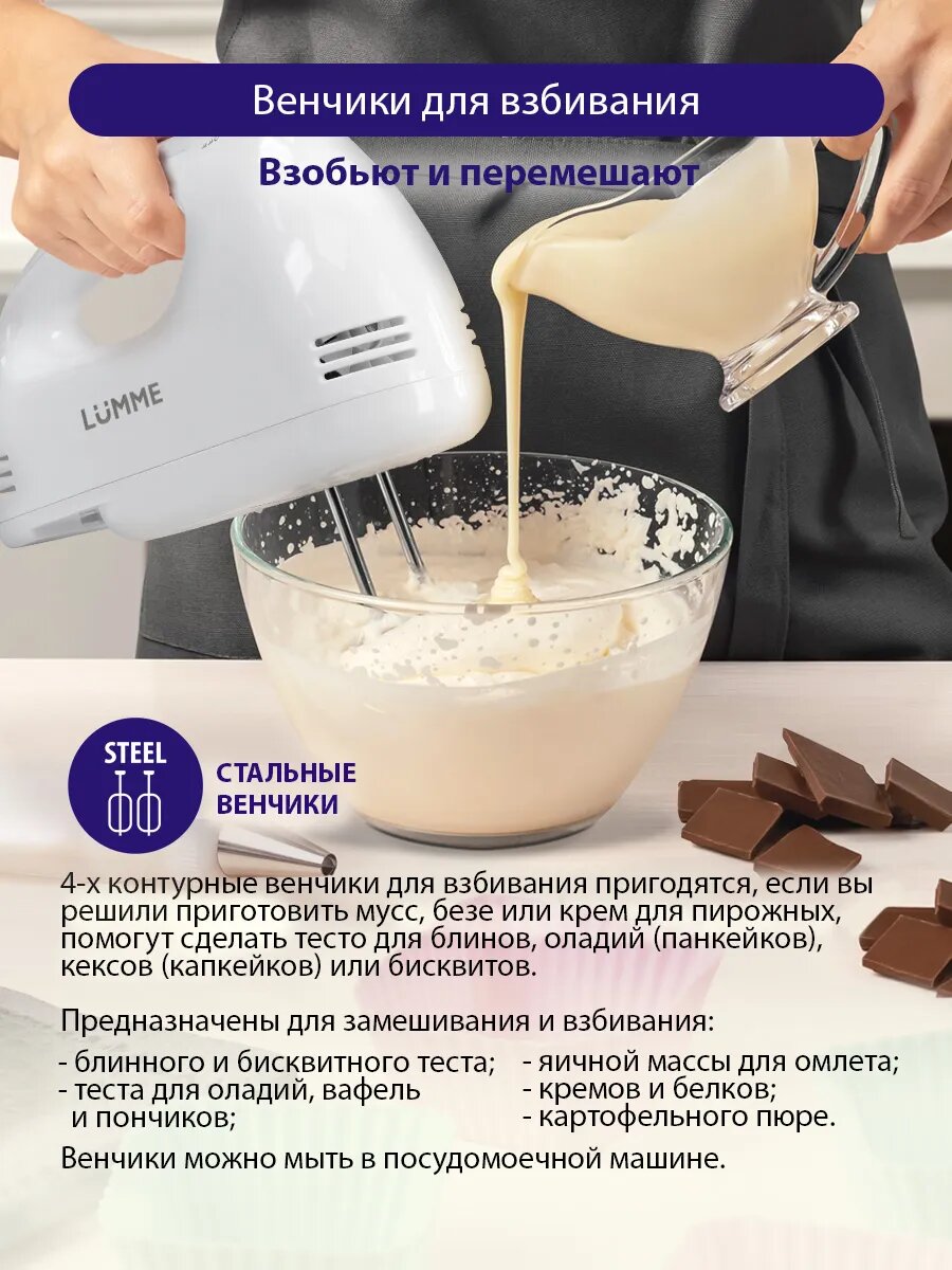 Миксер LUMME LU-MX1876A, ручной, 800 Вт, 5 скоростей, турборежим, белый