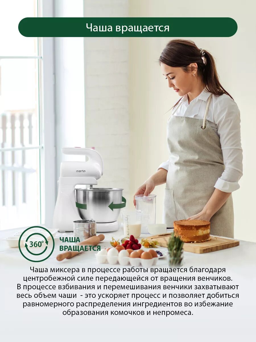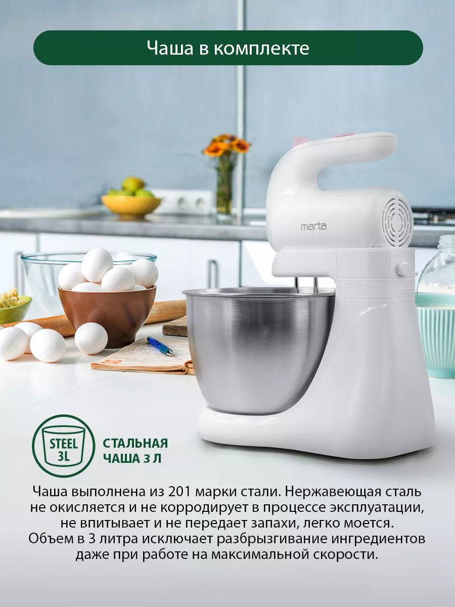 Миксер кухонный стационарный MARTA MT-MX1515A, 400Вт, 3 л, белый