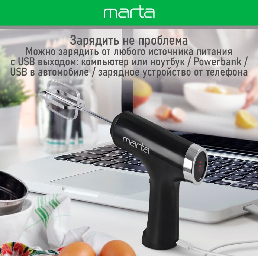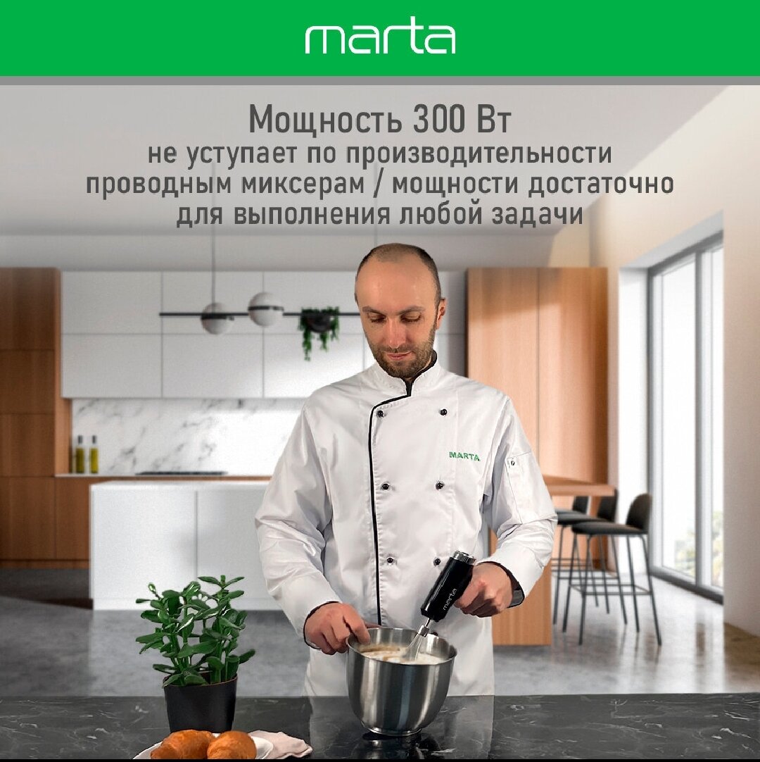 Миксер ручной MARTA MT-MX1523A белый мрамор