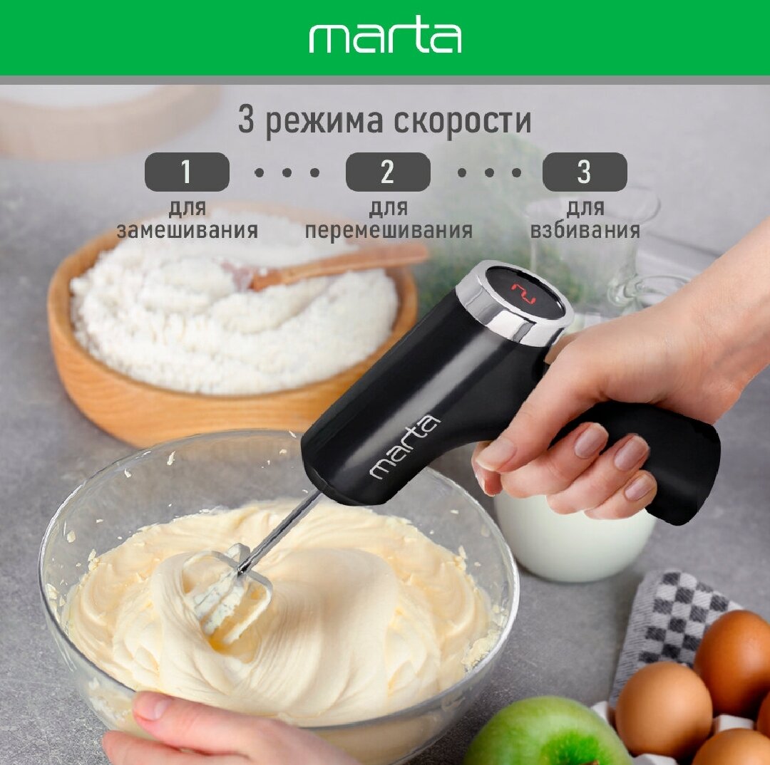 Миксер MARTA MT-MX1523A, мощность 300Вт, пластик/сталь, 3 скорости, ЖК-дисплей