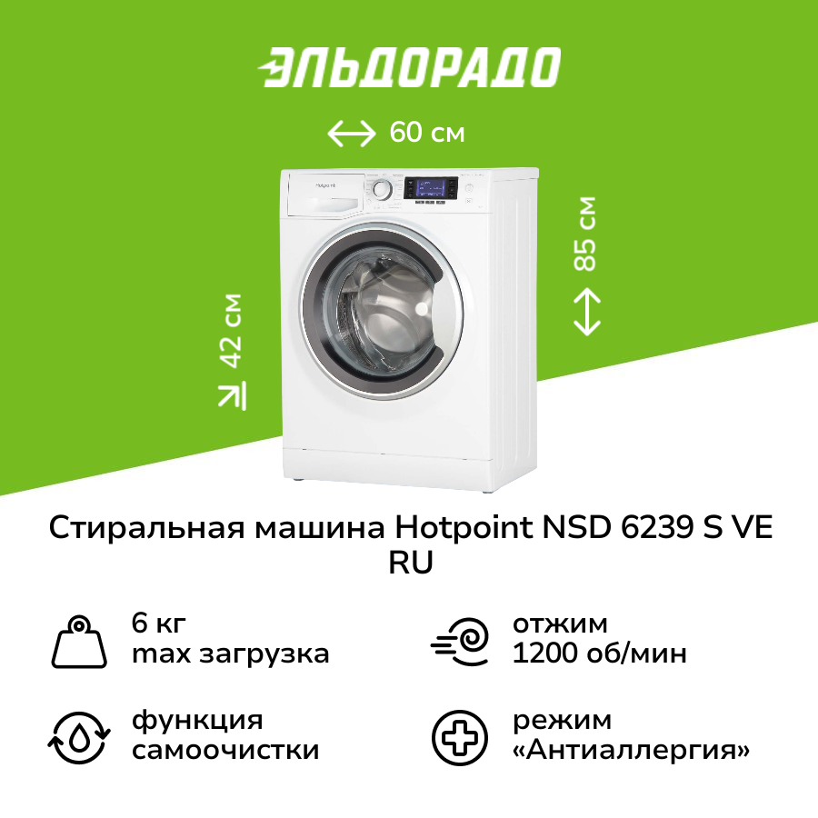 Стиральная машина Hotpoint NSD 6239 S VE RU, с фронтальной загрузкой, 6кг, 1200об/мин (869991652910)