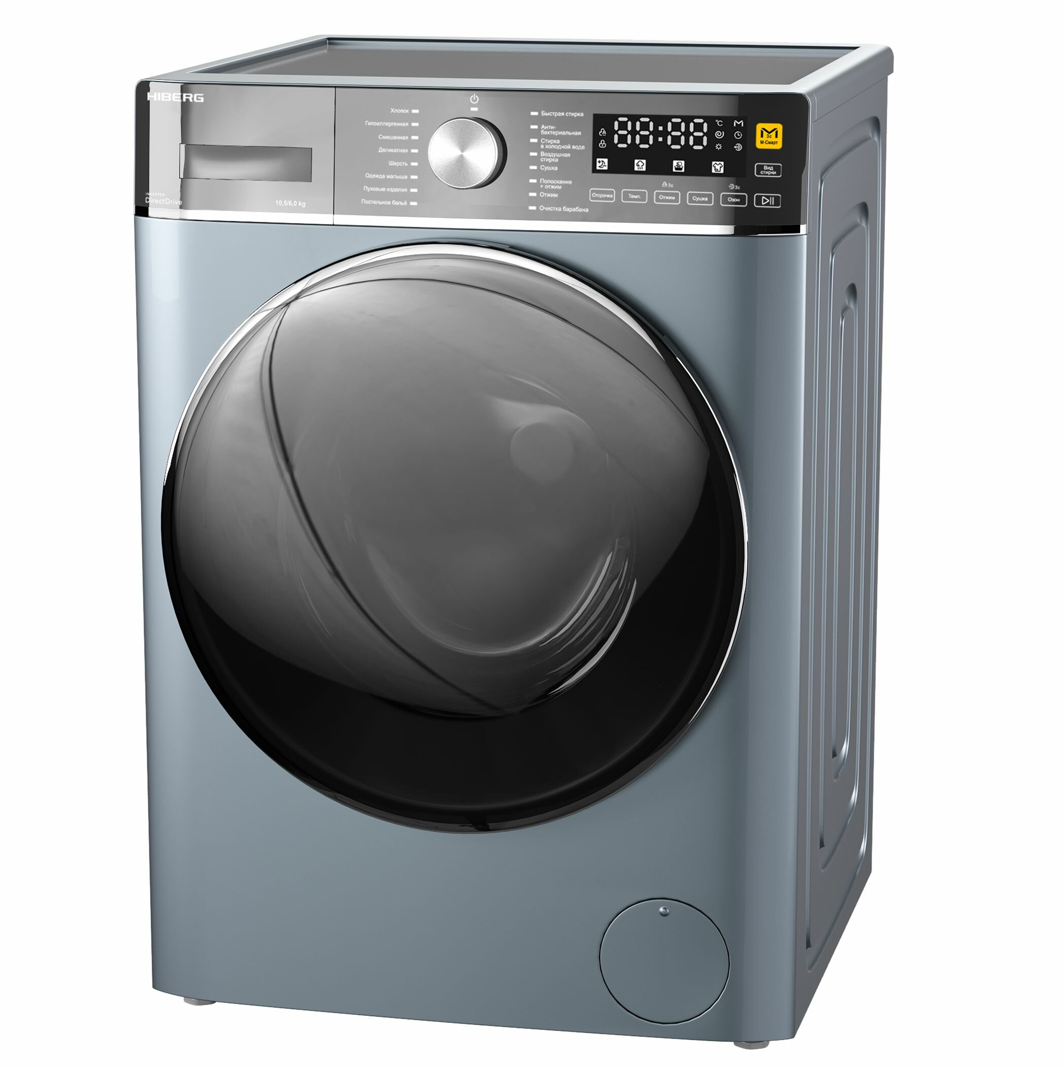 Стиральная машина с сушкой HIBERG i-DDQ8 - 10614 Ss, Inverter, Прямой привод DD, М-Smart - стирка в одно касание, Озонирование, Подсветка барабана, 10,5 кг, 1400 оборотов, 6 кг сушка