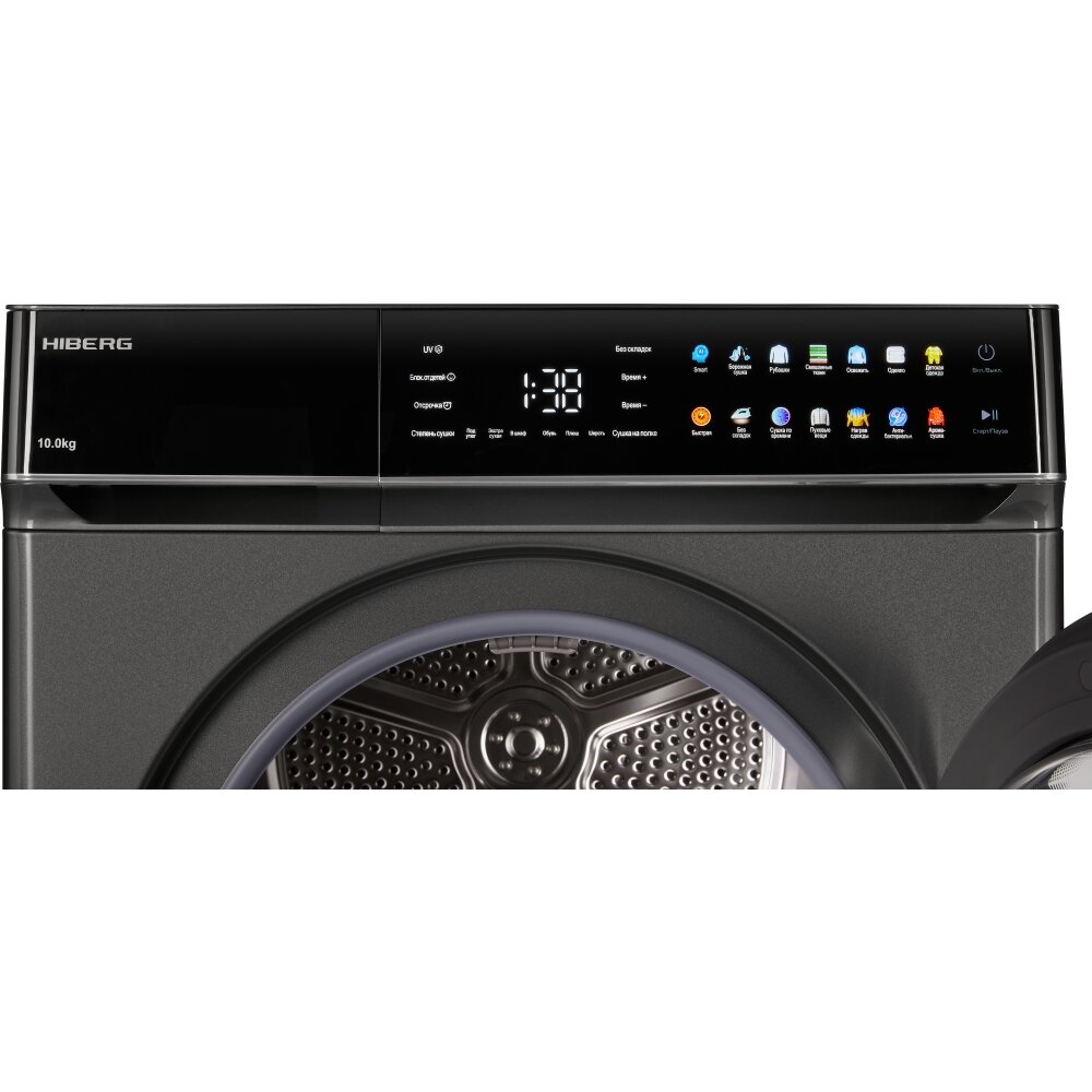 Купить Сушильная машина HIBERG HDQ11 – 10 SD, с тепловым насосом, загрузка 10 кг, электронное управление, цвет темно-серый,