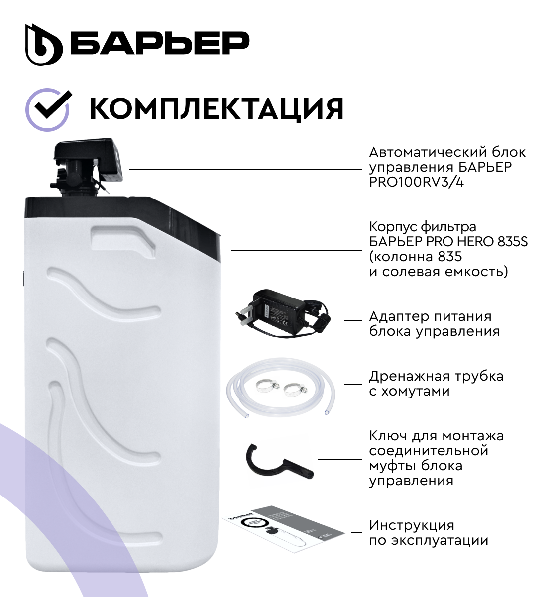 Купить БАРЬЕР PRO HERO 835S, фильтр кабинетного типа, умягчение воды и комплексная очистка, для бытовых и коммерческих целей
