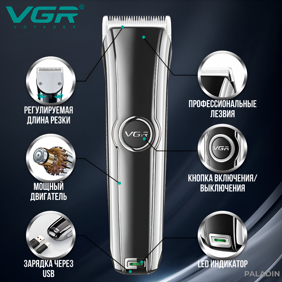 Машинка для стрижки VGR Professional VGR V-008, серебристый