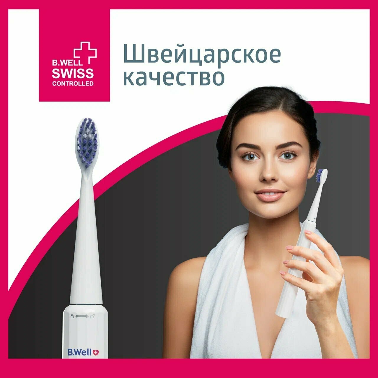 Электрическая зубная щетка B.Well MED-870, звуковая, щетина DuPont средней жесткости,12 режимов, 2 насадки, белая