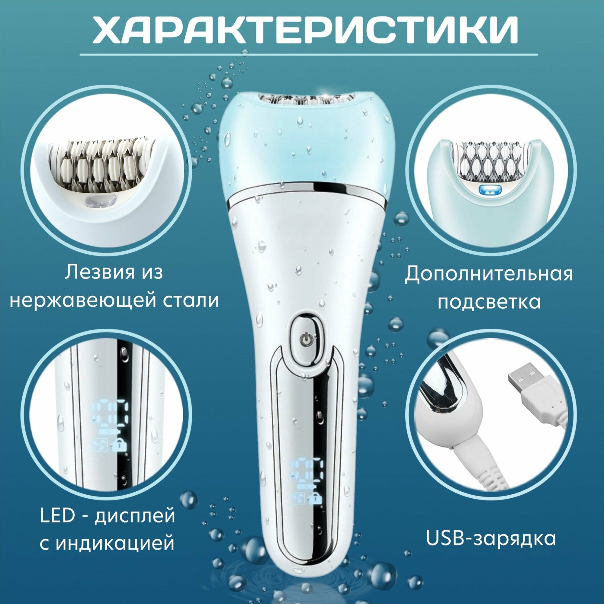 Эпилятор Catvil V-733, с подсветкой, 6 в 1, беспроводной, голубой интересное:
