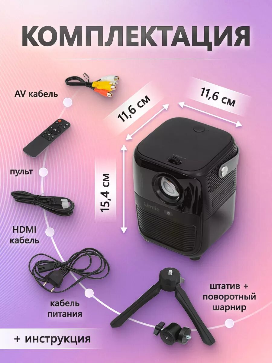Проектор Umiio P860 1920x1080 (Full HD), 2000:1, 800 лм, LCD, 1.05 кг, Global для РФ, черный