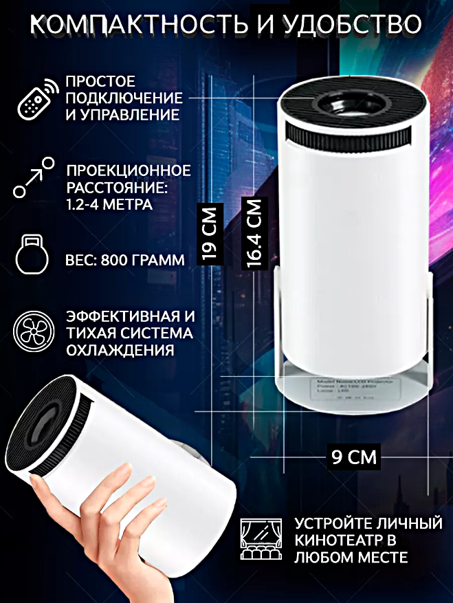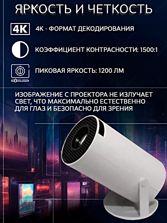 Проектор HY300 HD 720p Android TV, Wi-Fi/5G, HDMI, Портативный мультимедийный, Белый