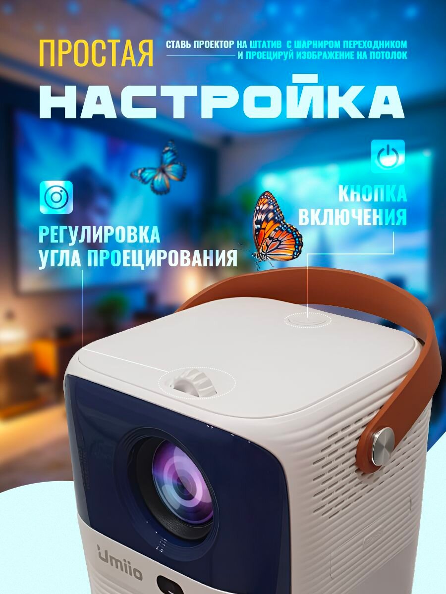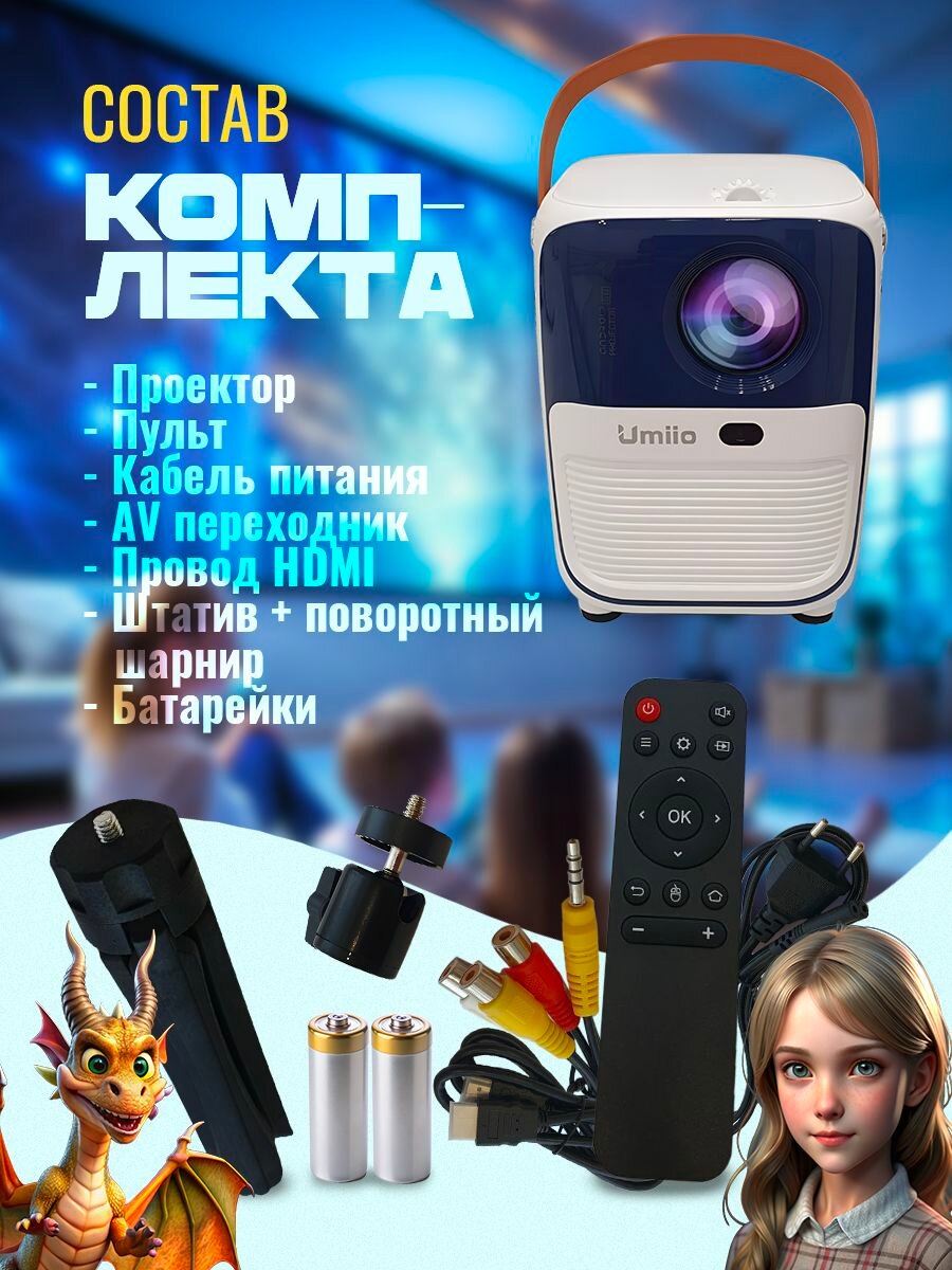 Проектор UMIIO,lingbo Q1 HDMI для приставки и компьютера Wi-Fi 5G Bluetooth, с штативом, белый