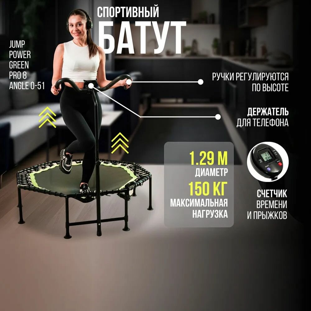 Купить Батут для джампинга Jump Power Angel Pro Green O-51 с нагрузкой до 150 килограмм/с ручкой и счетчиком/складной джампинг батут для фитнеса
