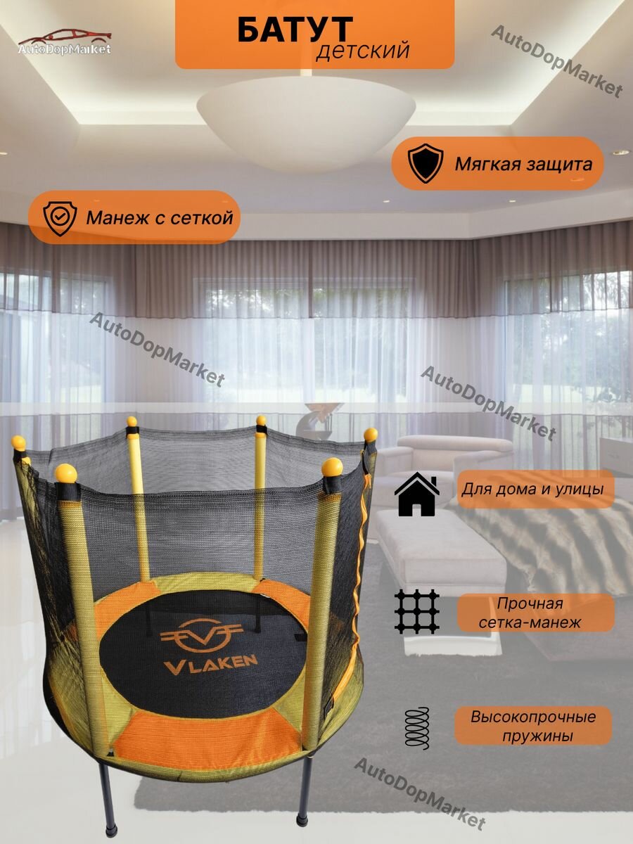Батут Vlaken, с сеткой, для детей, максимальная нагрузка 100кг интересное: