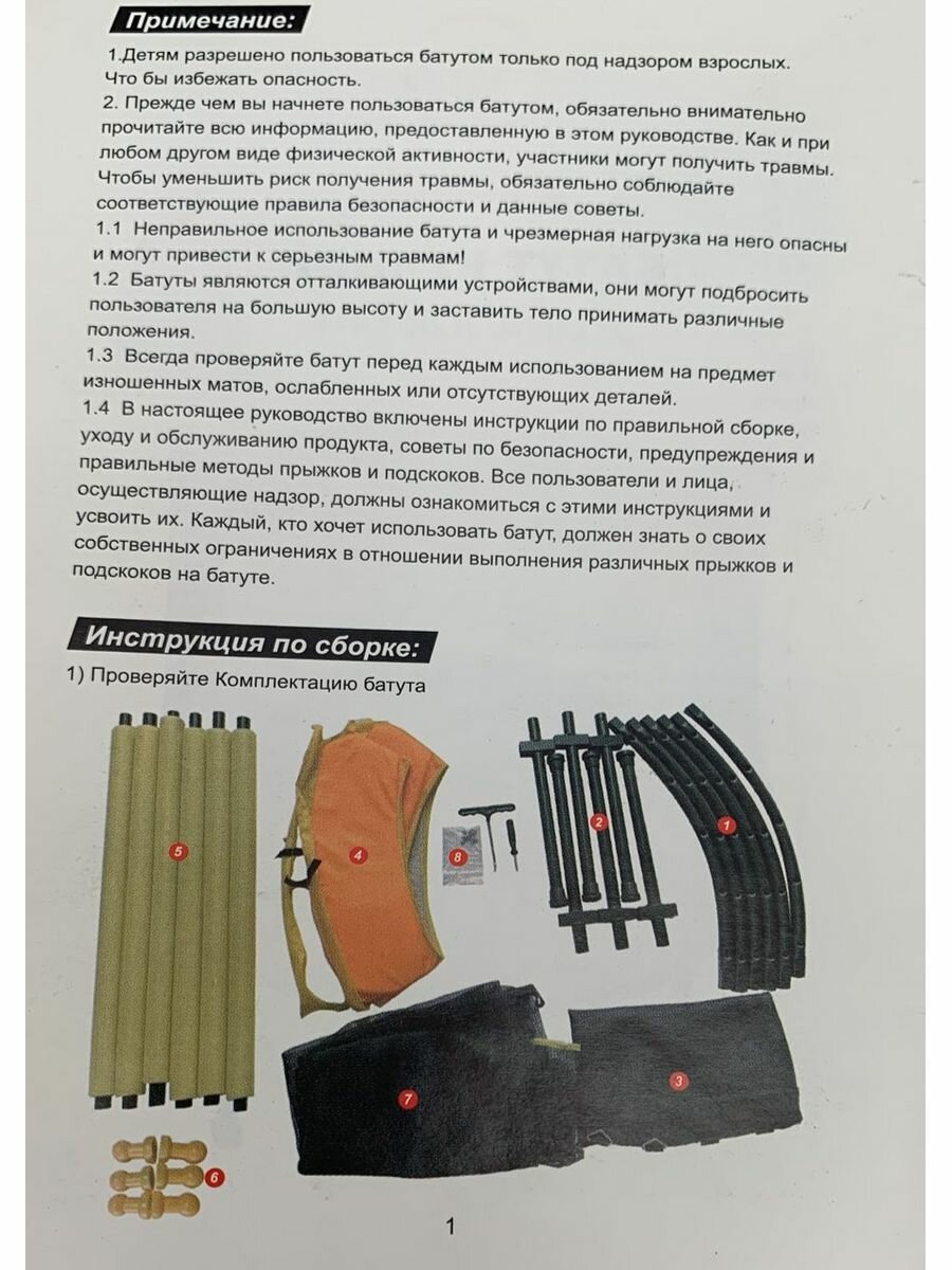 | Состав набора | Прыжковое полотно, защитная сетка, рама, стойки, защитные наконечники на стойки, пружины с защитой, ножки, ключи для сборки |