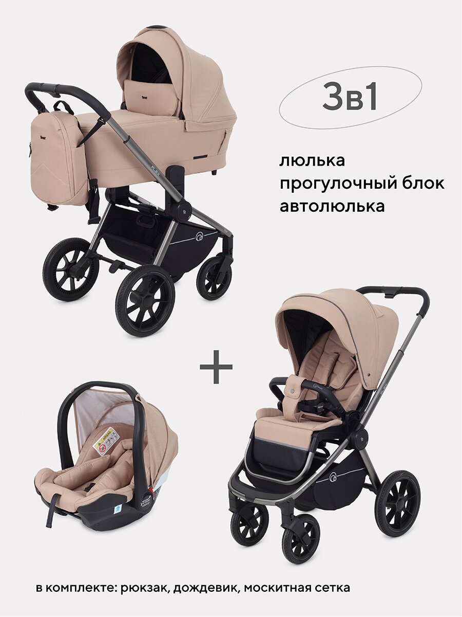 Коляска детская универсальная Rant Flex Pro 3 в 1 2023 RA075, Beige