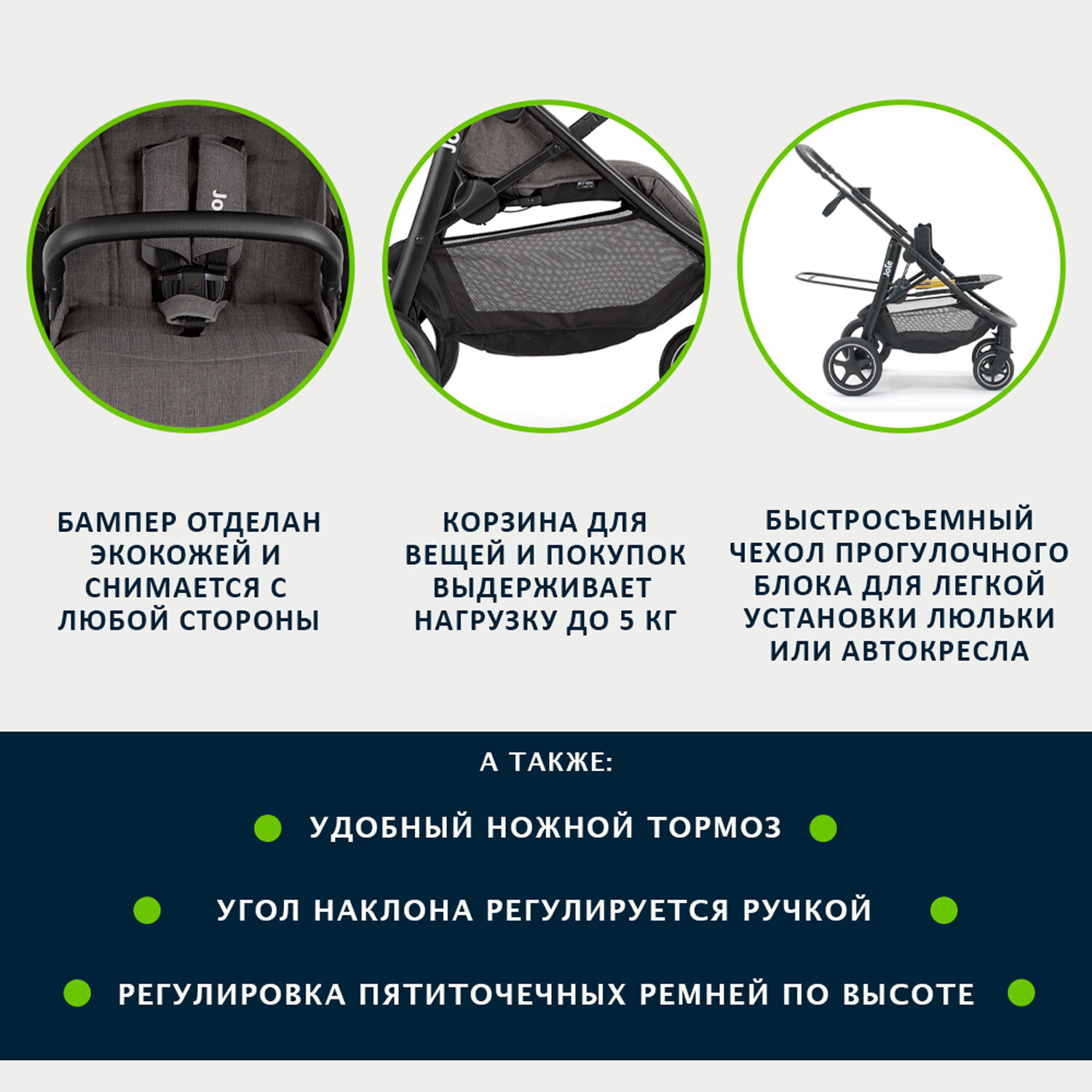| Аксессуары в комплекте | адаптеры для крепления автокресла, бампер, дождевик, капюшон, подстаканник, солнцезащитный козырек |