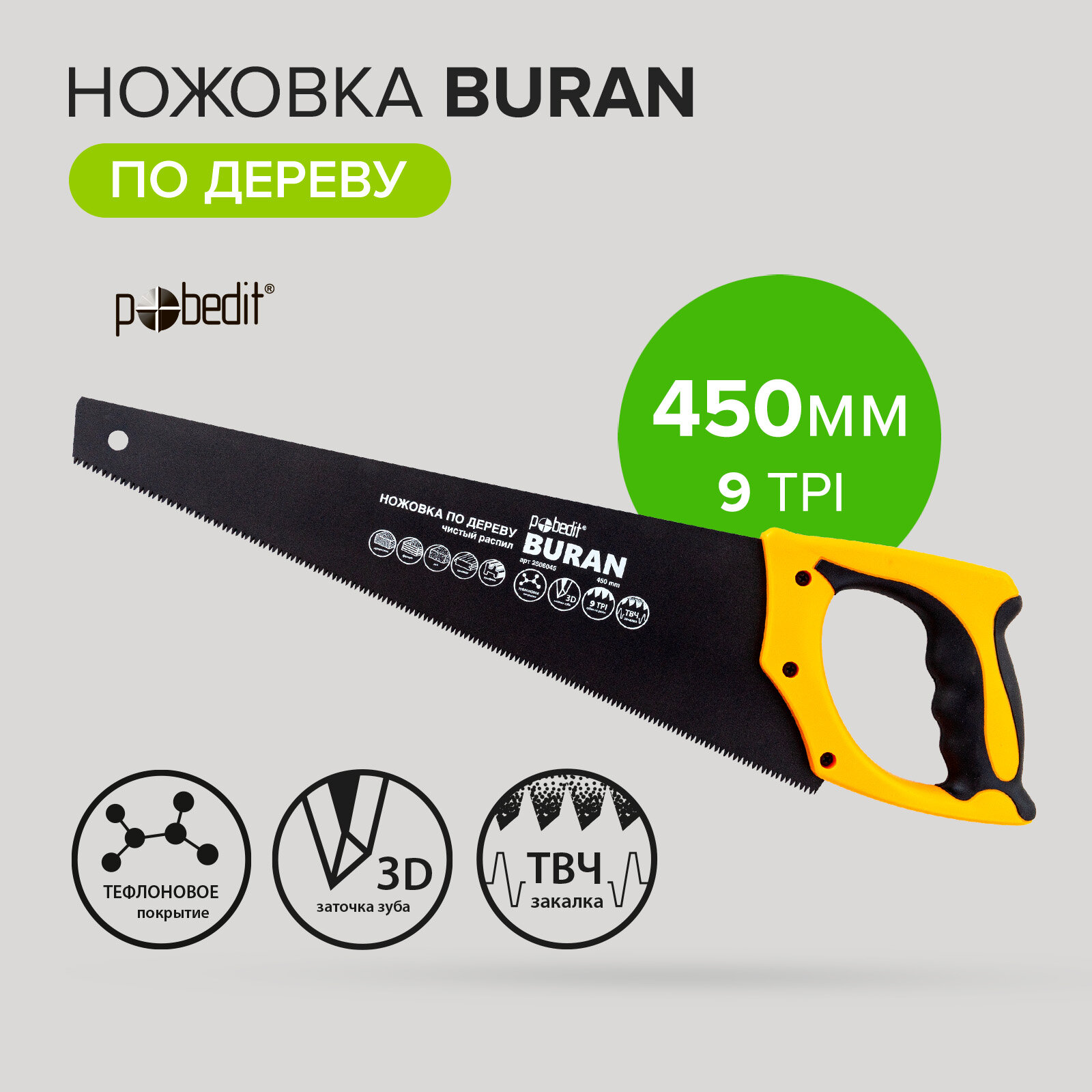 Ножовка по дереву 450 мм, Pobedit интересное: