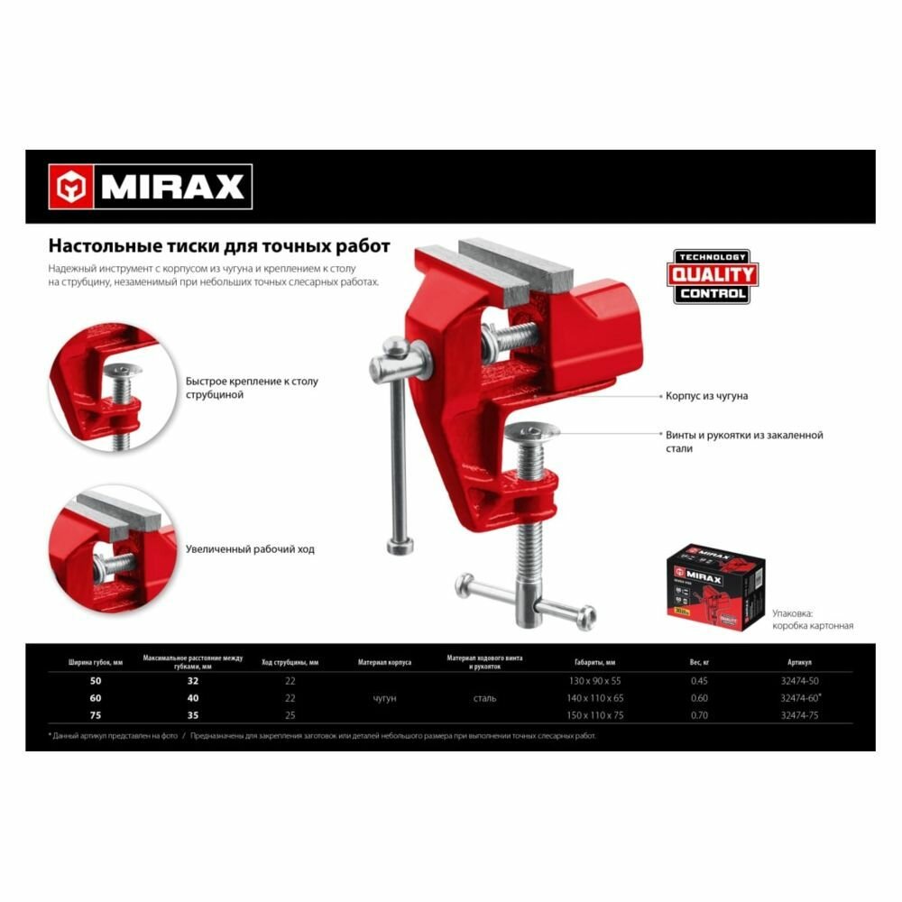 Настольные тиски для точных работ MIRAX 75 мм. 32474-75 интересное: