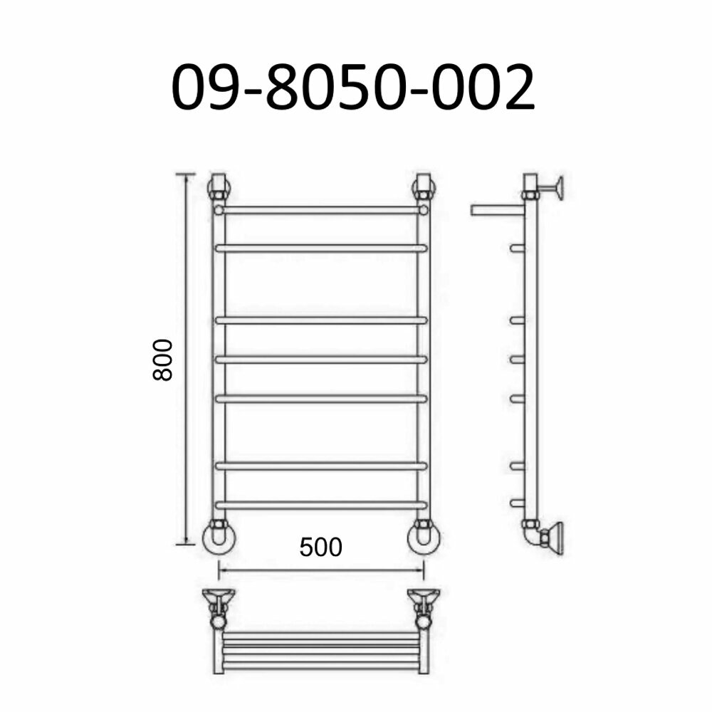 Водяной полотенцесушитель Маргроид Вид 9 800x500 09-8050-002 с полкой Хром