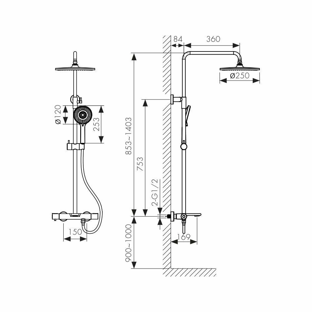 | Форма верхнего душа | квадратная |