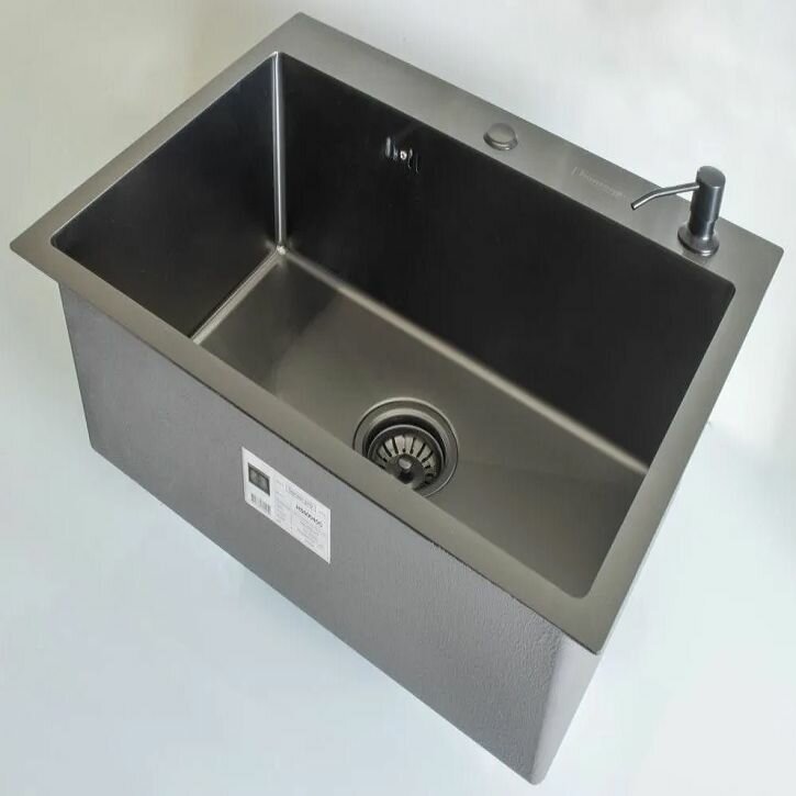 Мойка для кухни из нержавеющей стали HANSEN 50х50 с дозатором, цвет графит