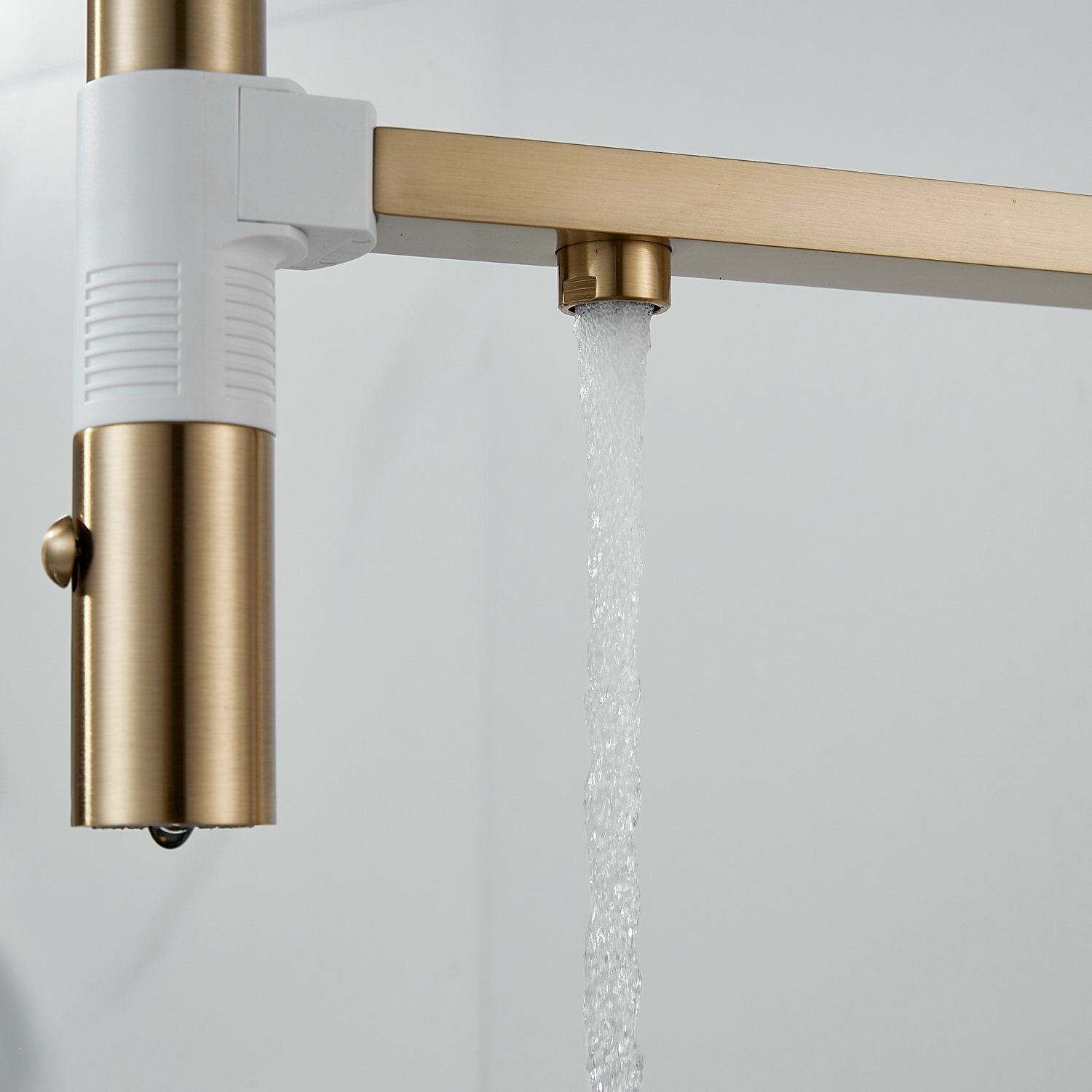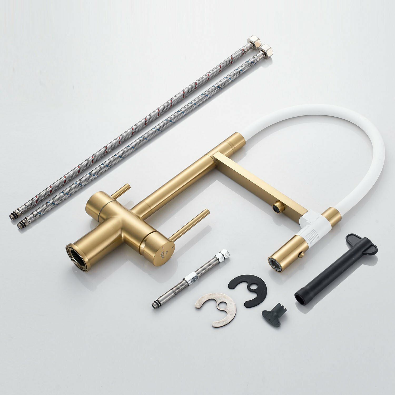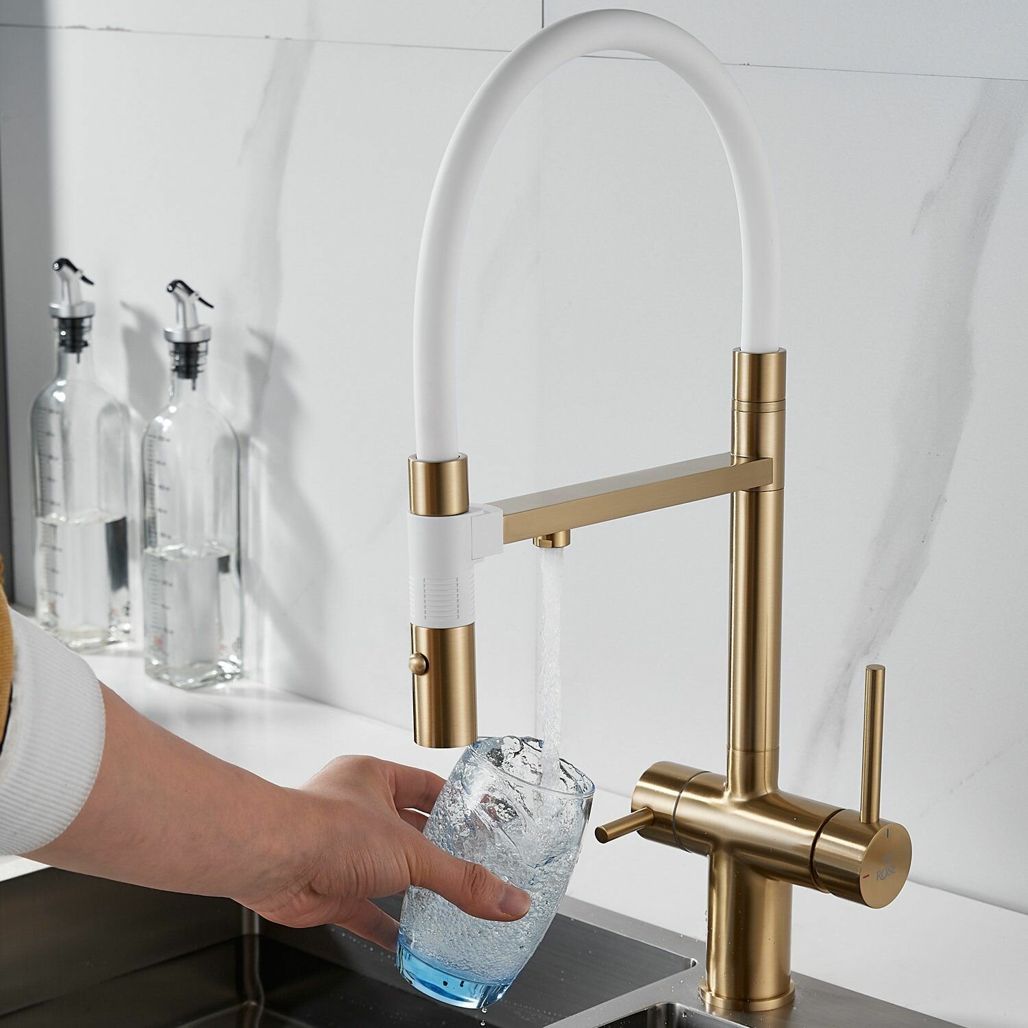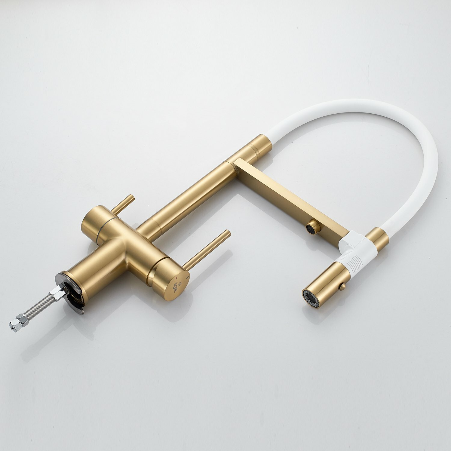 Смеситель для кухни с гибким изливом и подключением фильтра Rose R958G золотой сатин