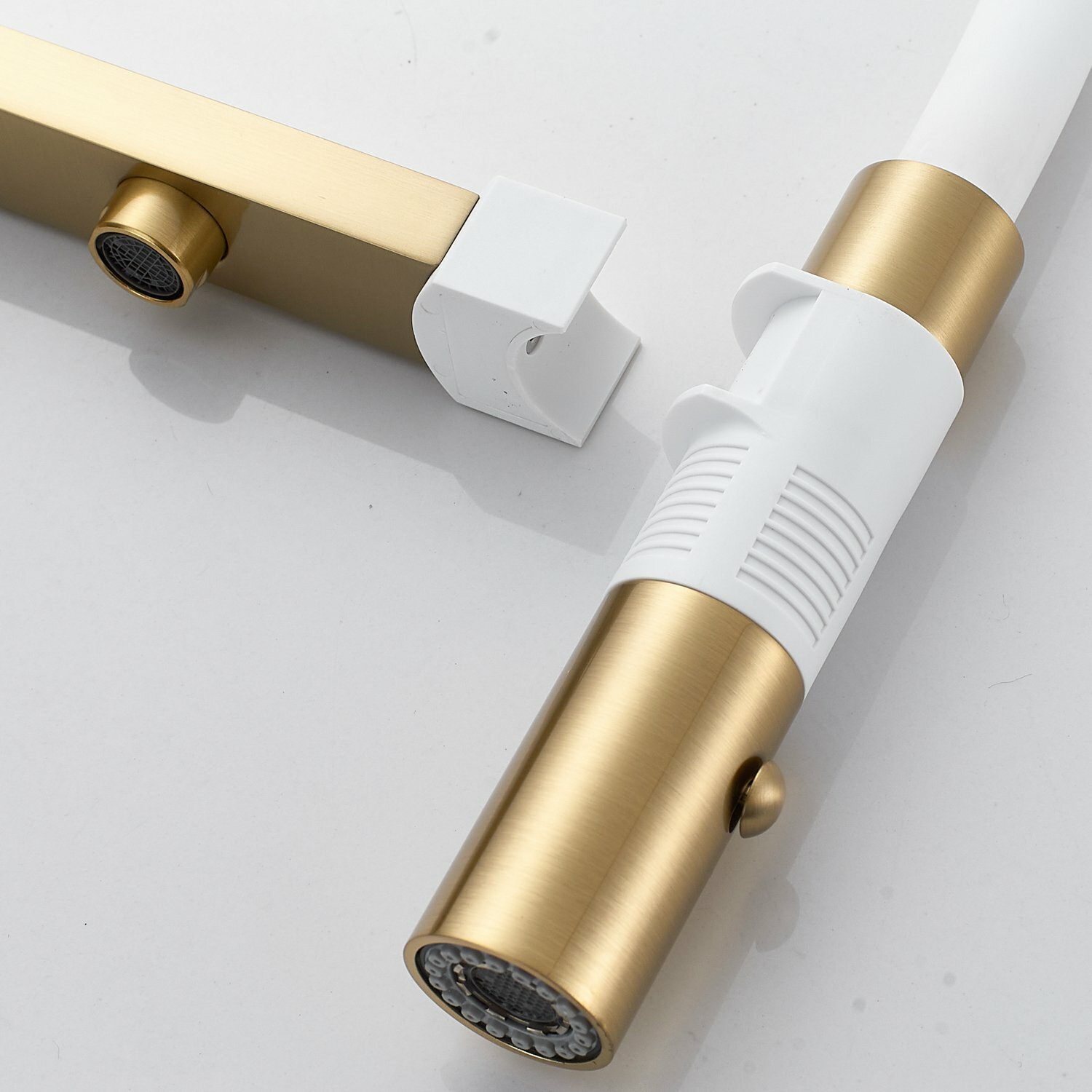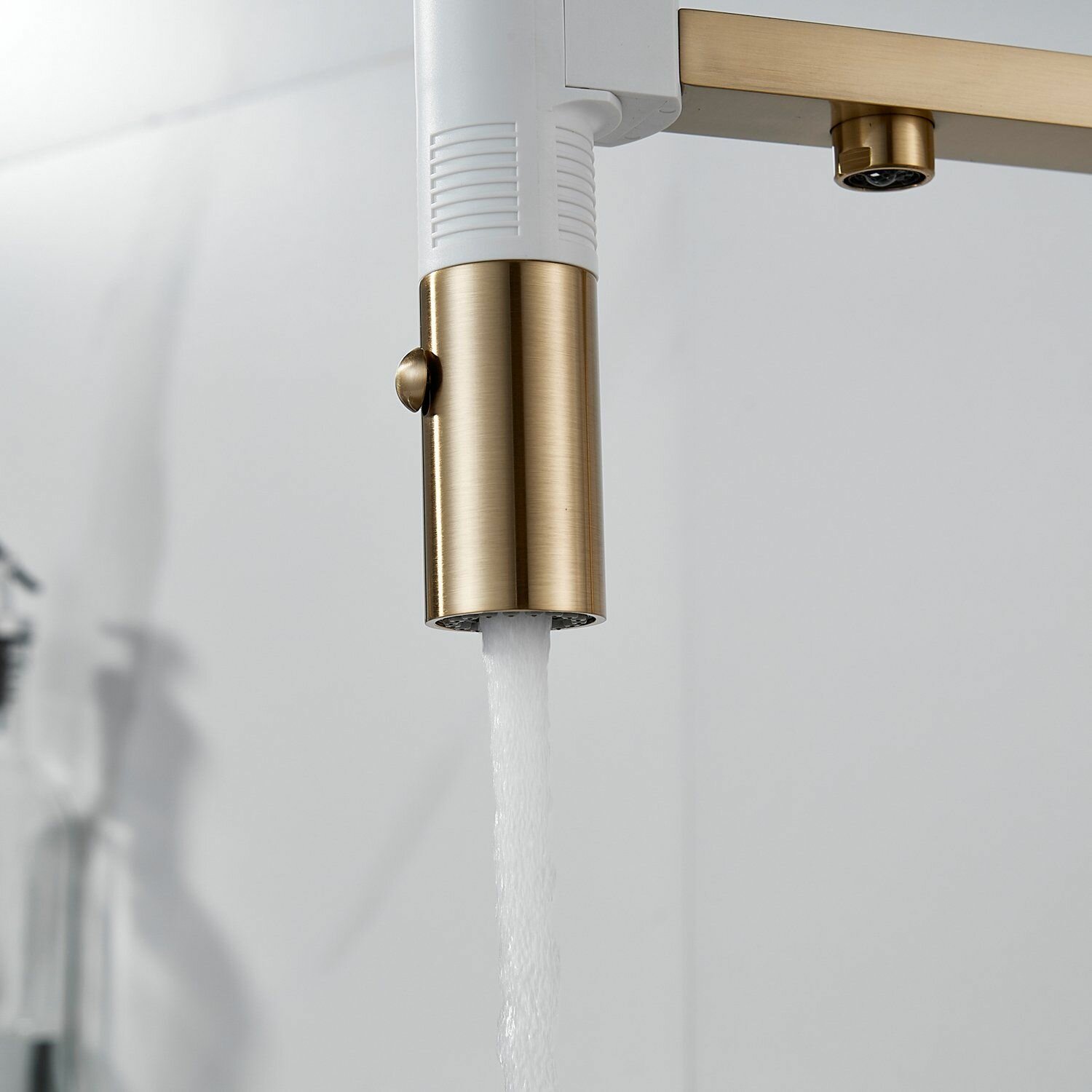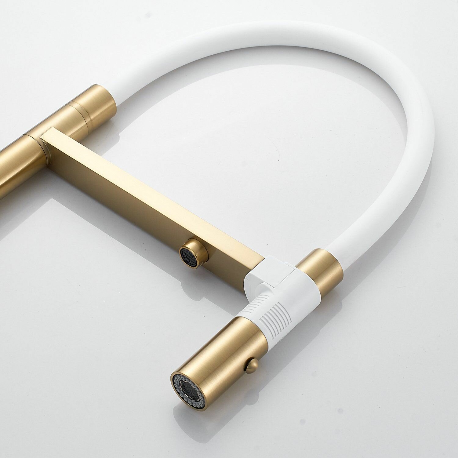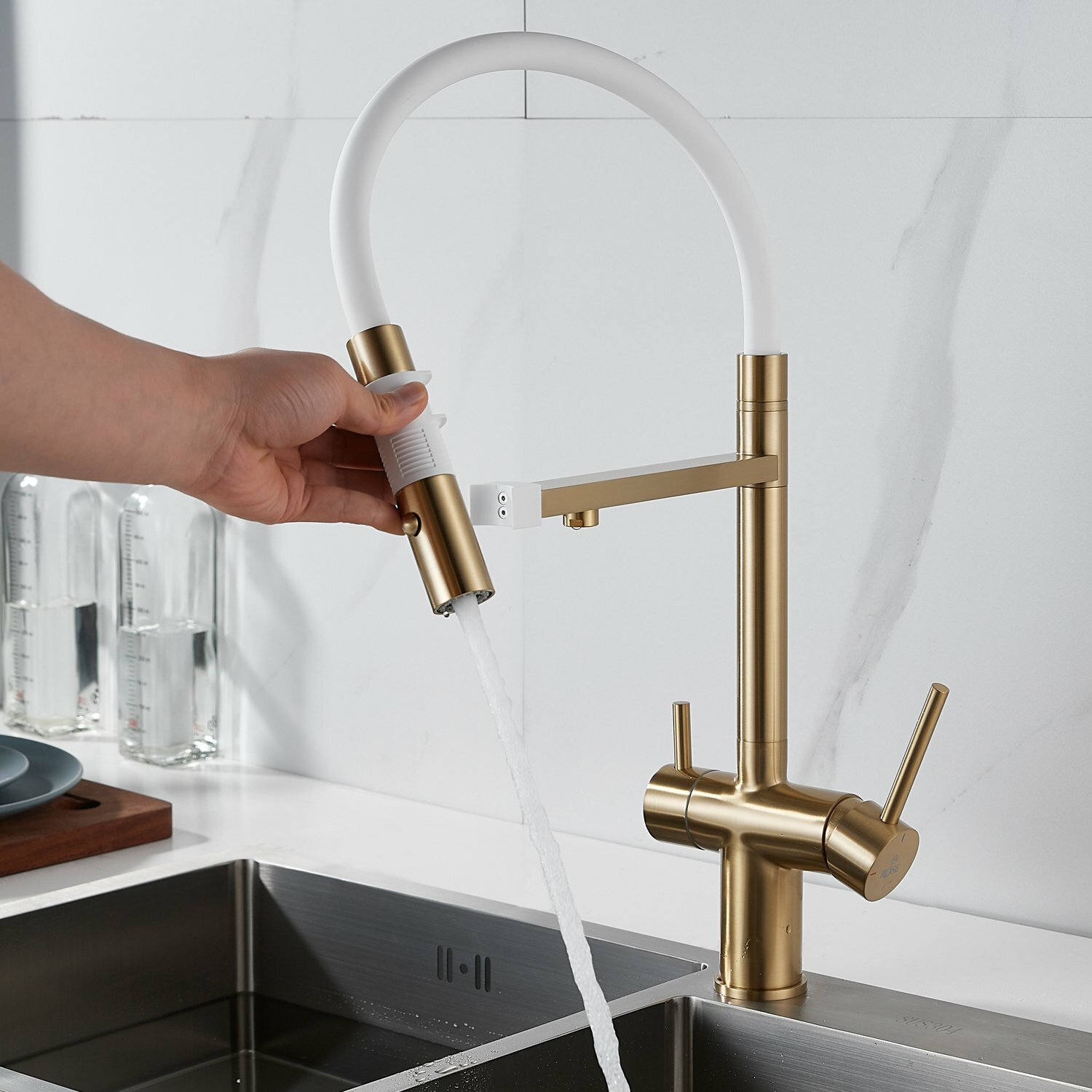 Смеситель для кухни с гибким изливом и подключением к фильтру Rose R958G, золотой сатин