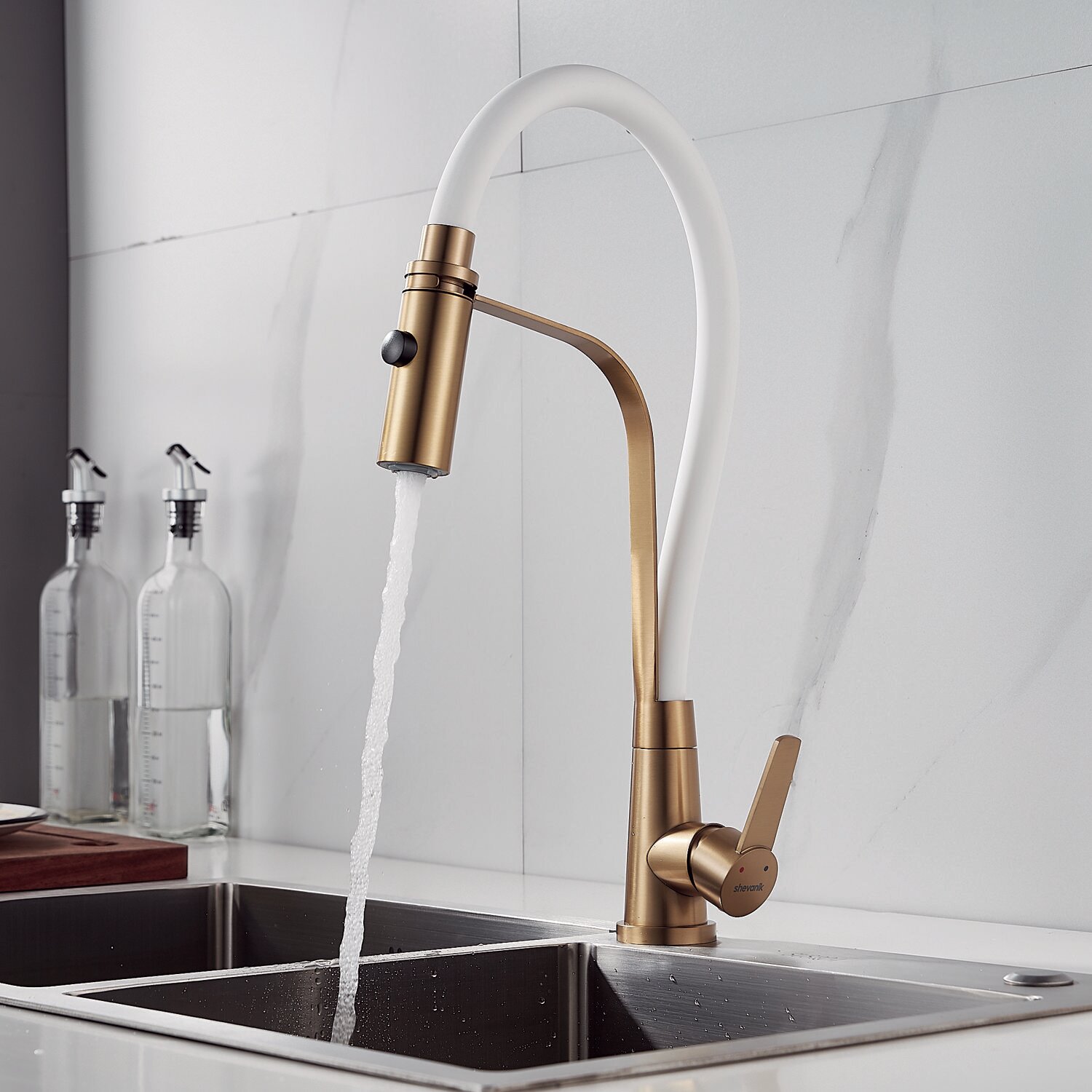 Купить Смеситель для кухни с гибким изливом Shevanik S943G-1 золотой сатин