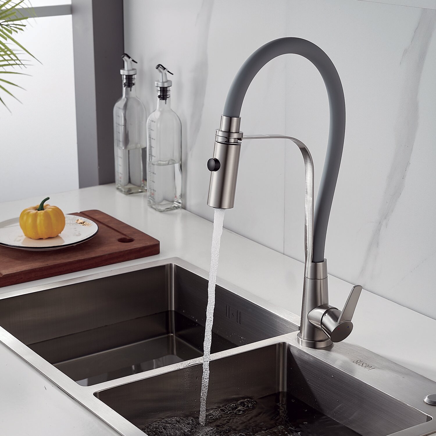Смеситель для кухни с гибким изливом Shevanik S943T-3 оружейная сталь