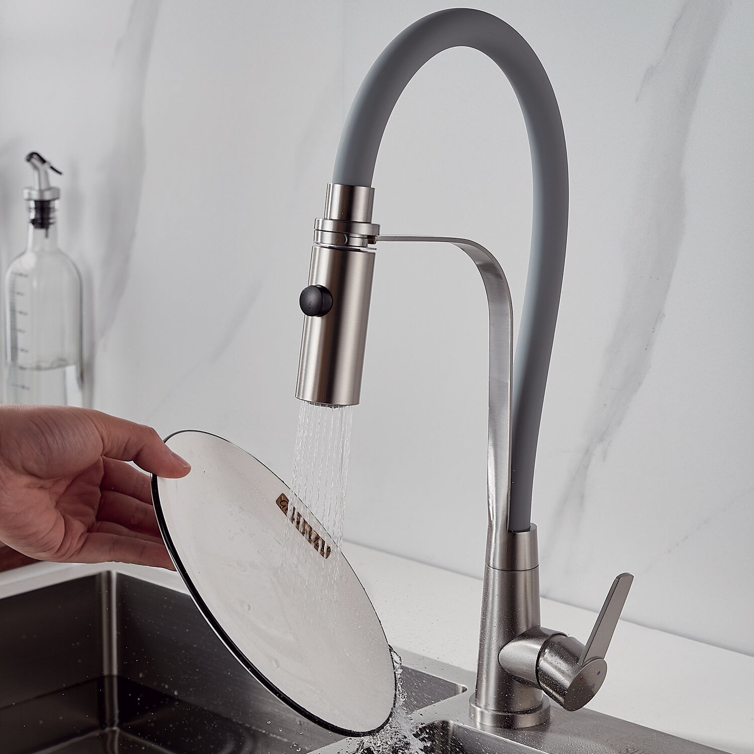 Смеситель для кухни с гибким изливом и режимом "душ" Shevanik S943L-9, сатин