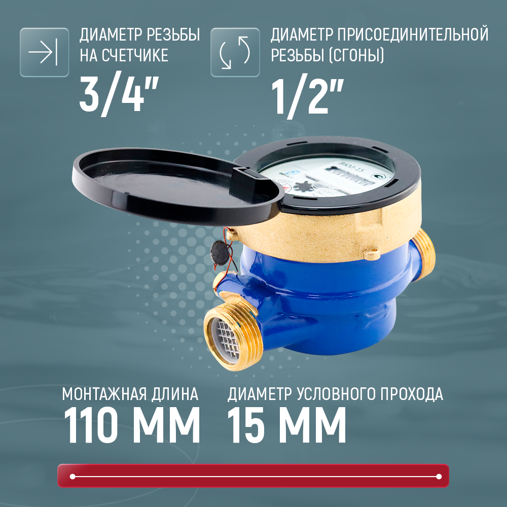 Счетчик воды универсальный ВКМ-15 | код 71-15-01 | Декаст М ( 1шт )