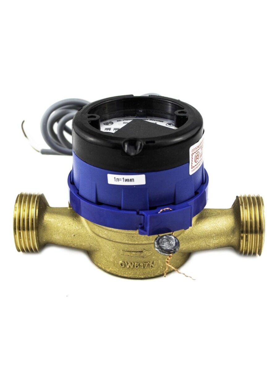Счетчик холодной воды ВСХд 20 (1л/имп), одноструйный, крыльчатый, Ду20 мм, резьба, материал корпуса-латунь, IP54, Тепловодомер R111-020-324-B54 интересное:
