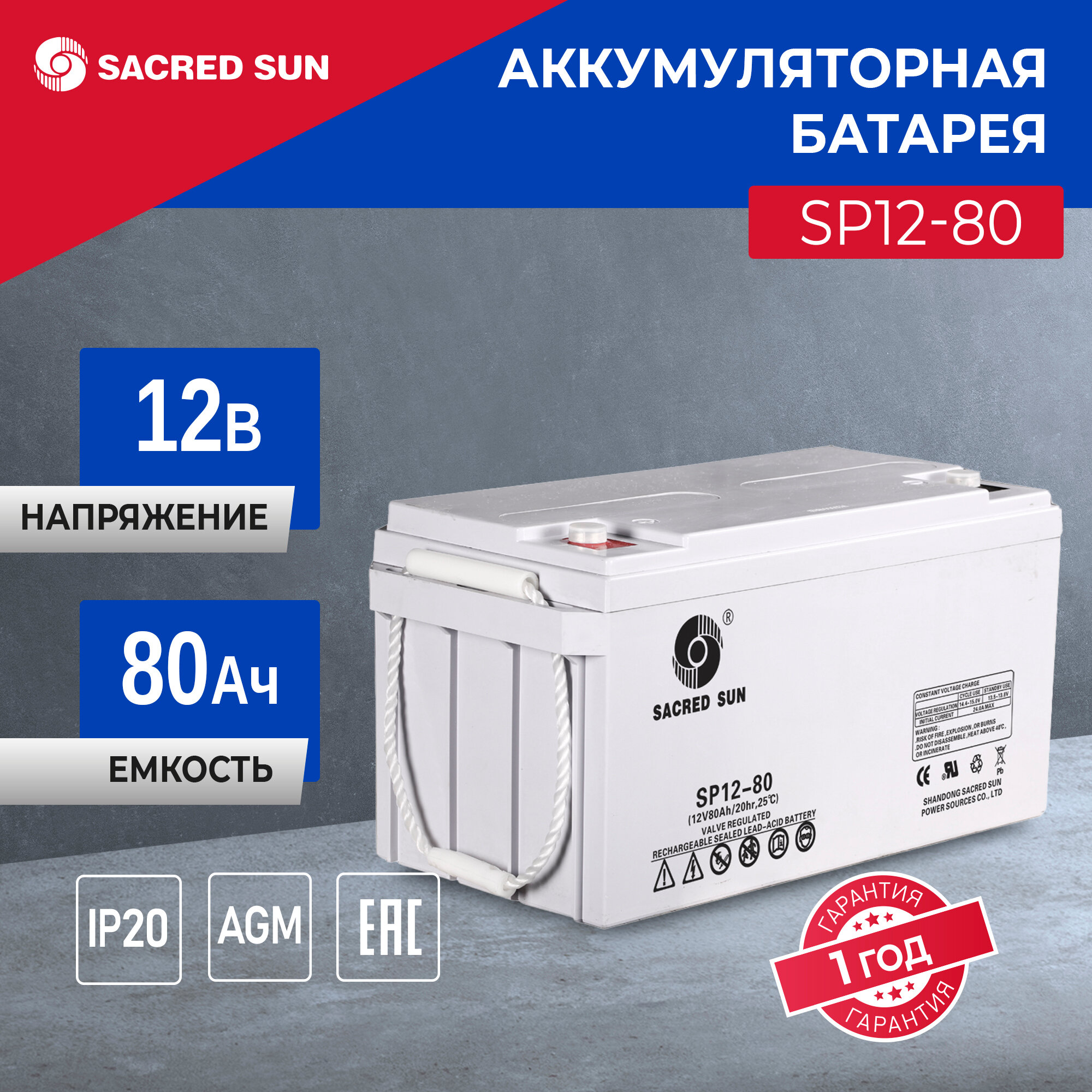 Аккумулятор Sacred Sun SP12-80 12В 80Ач (12V 80 Ah) батарея для ИБП и дома, аварийного питания, систем видео-наблюдения и пожарной сигнализации интересное: