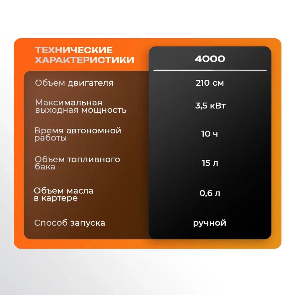 СохранитьГенератор бензиновый Partner for garden 4000 ( 4,4 кВа , 220 В / 12 В, 3 / 3,5 кВт, 50 Гц, 7 л.с ) интересное: