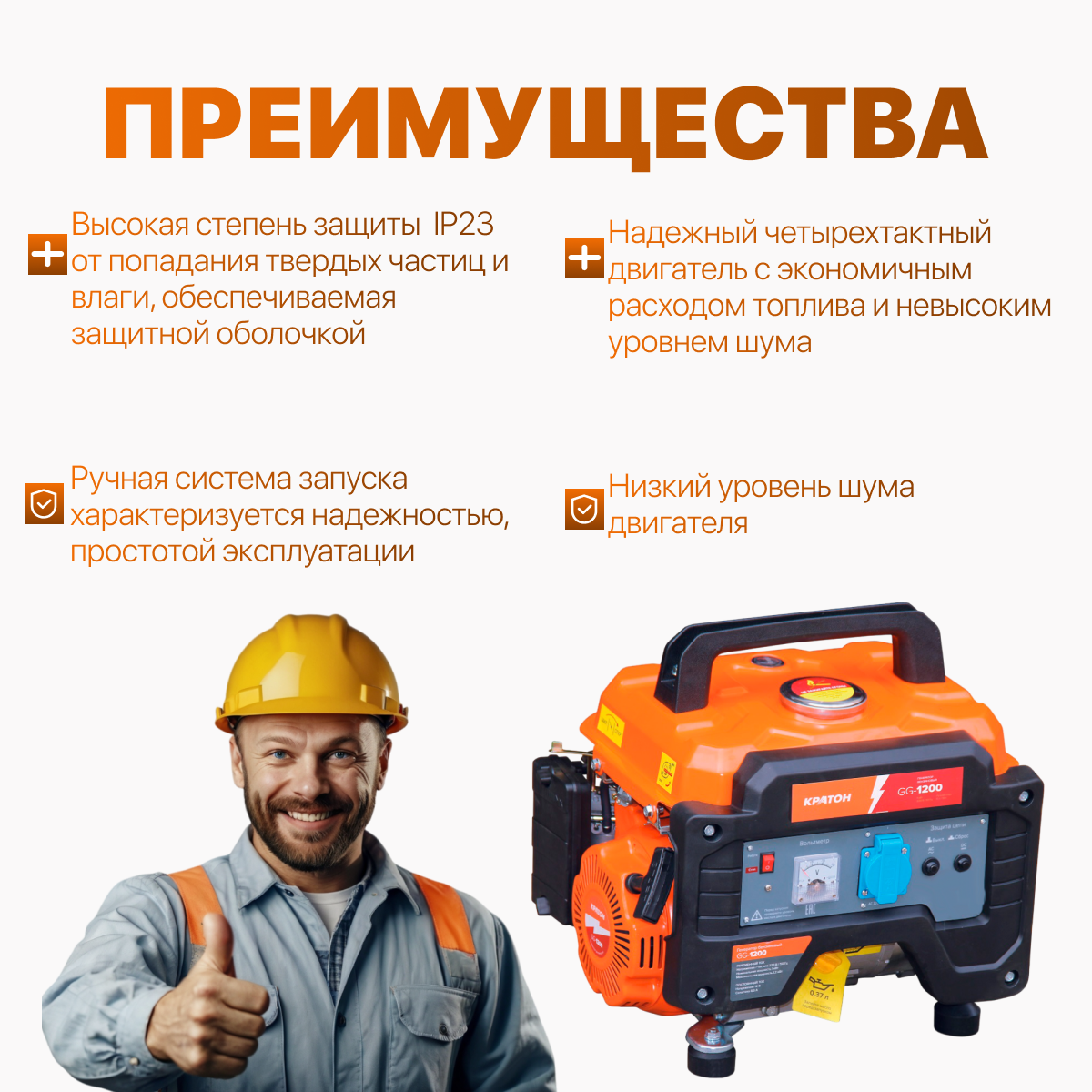 Генератор бензиновый Кратон GG-1200 , 1,2 кВт, однофазный, ручной пуск интересное: