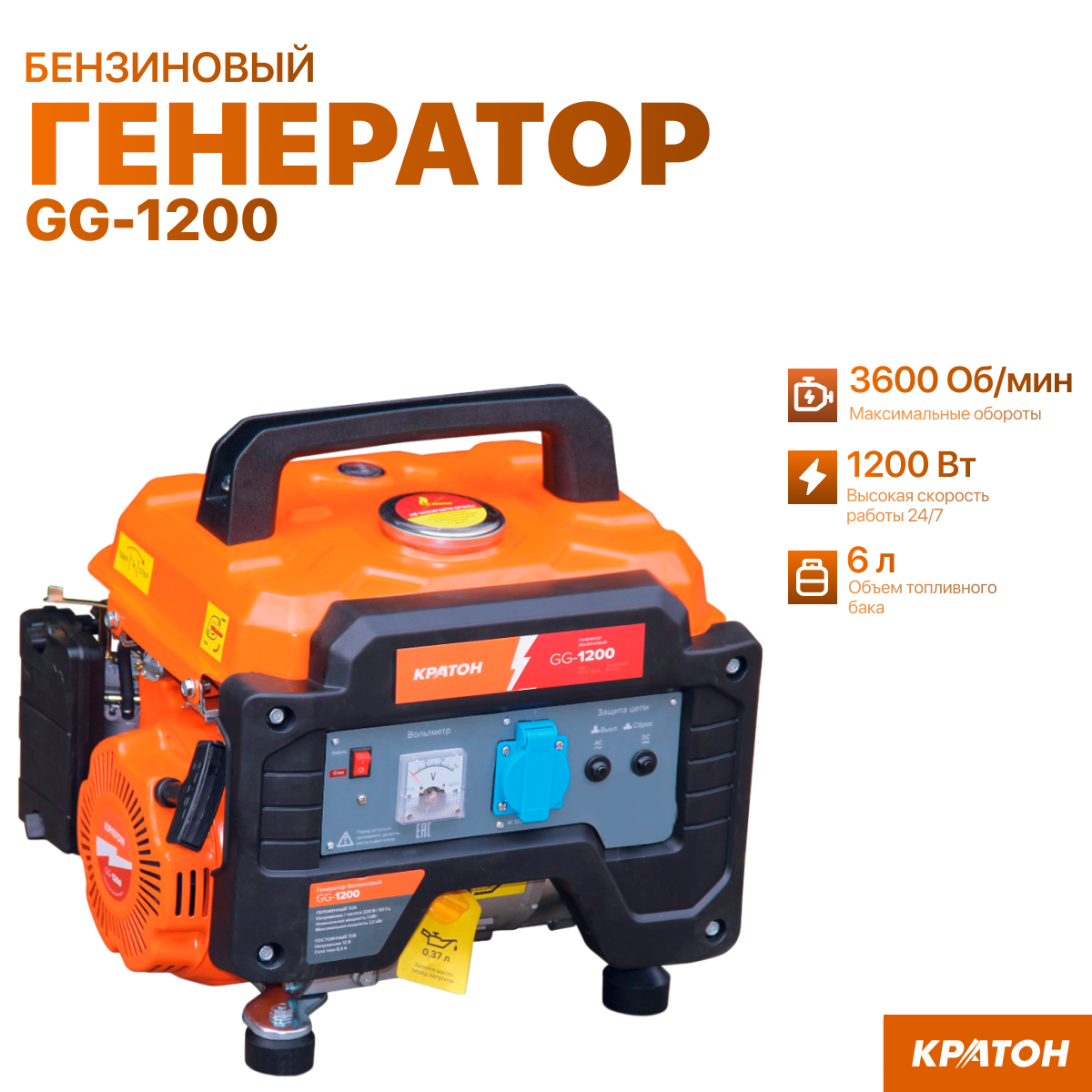 Ниже Вы можете прочитать отзывы на Генератор бензиновый Кратон GG-1200 , 1,2 кВт, однофазный, ручной пуск, ознакомится с подробными характеристиками, посмотреть интересные обзоры и фотографии на Генератор бензиновый Кратон GG-1200 , 1,2 кВт, однофазный, ручной пуск.
