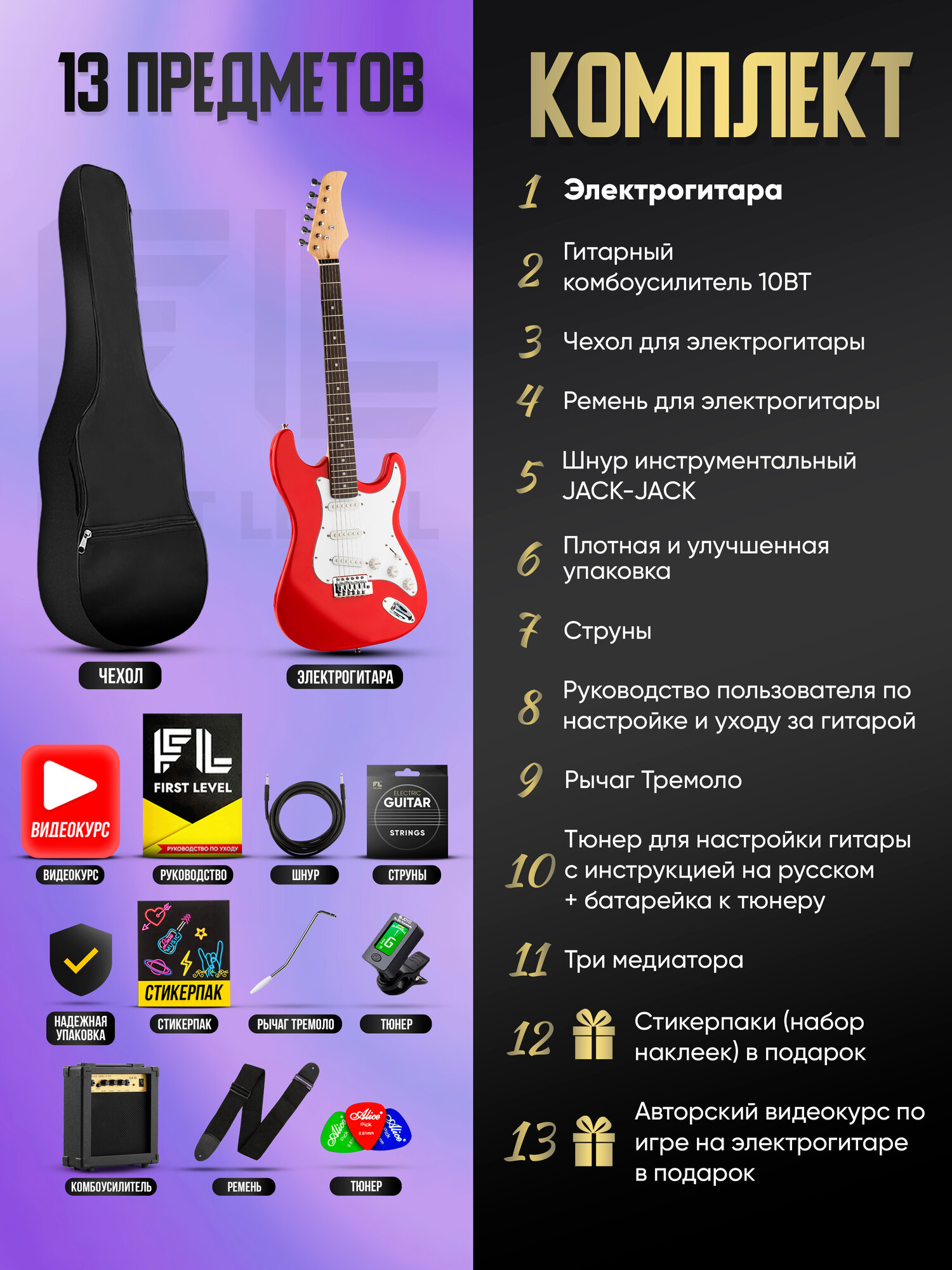 Купить Электрогитара Stratocaster с комплектом PREMIUM, красный