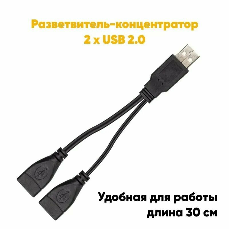 Хаб разветвитель 1 USB на 2 x USB A 30 см Dream A8/Переходник для ПК, Mac OS / USB HUB на 2 порта
