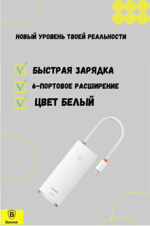 Хаб 6-портовый адаптер BASEUS LITE SERIES,USB-C / TYPE-C HUB (WKQX050002) белый 20 см интересное: