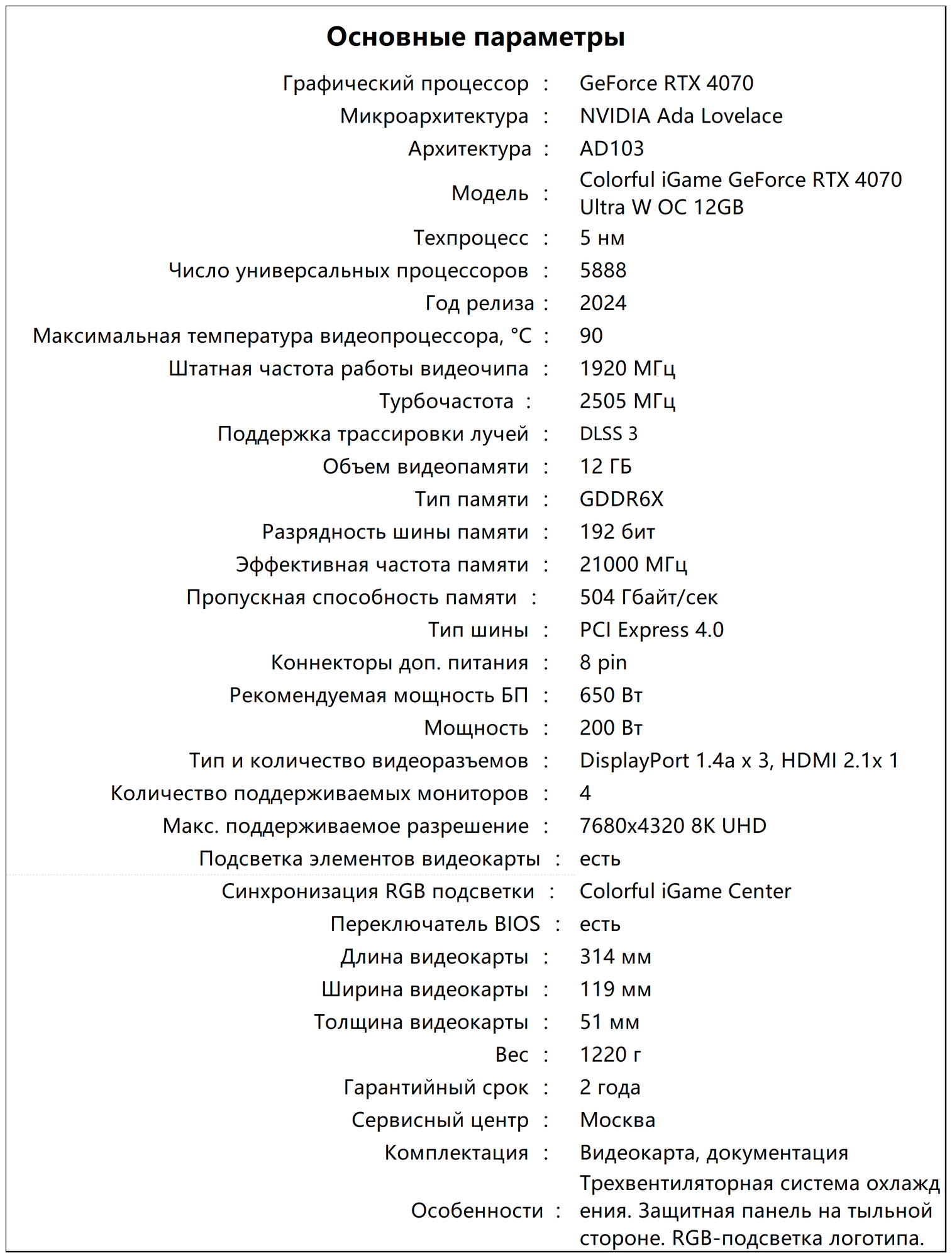 | Название видеокарты | NVIDIA GeForce RTX 4070 |