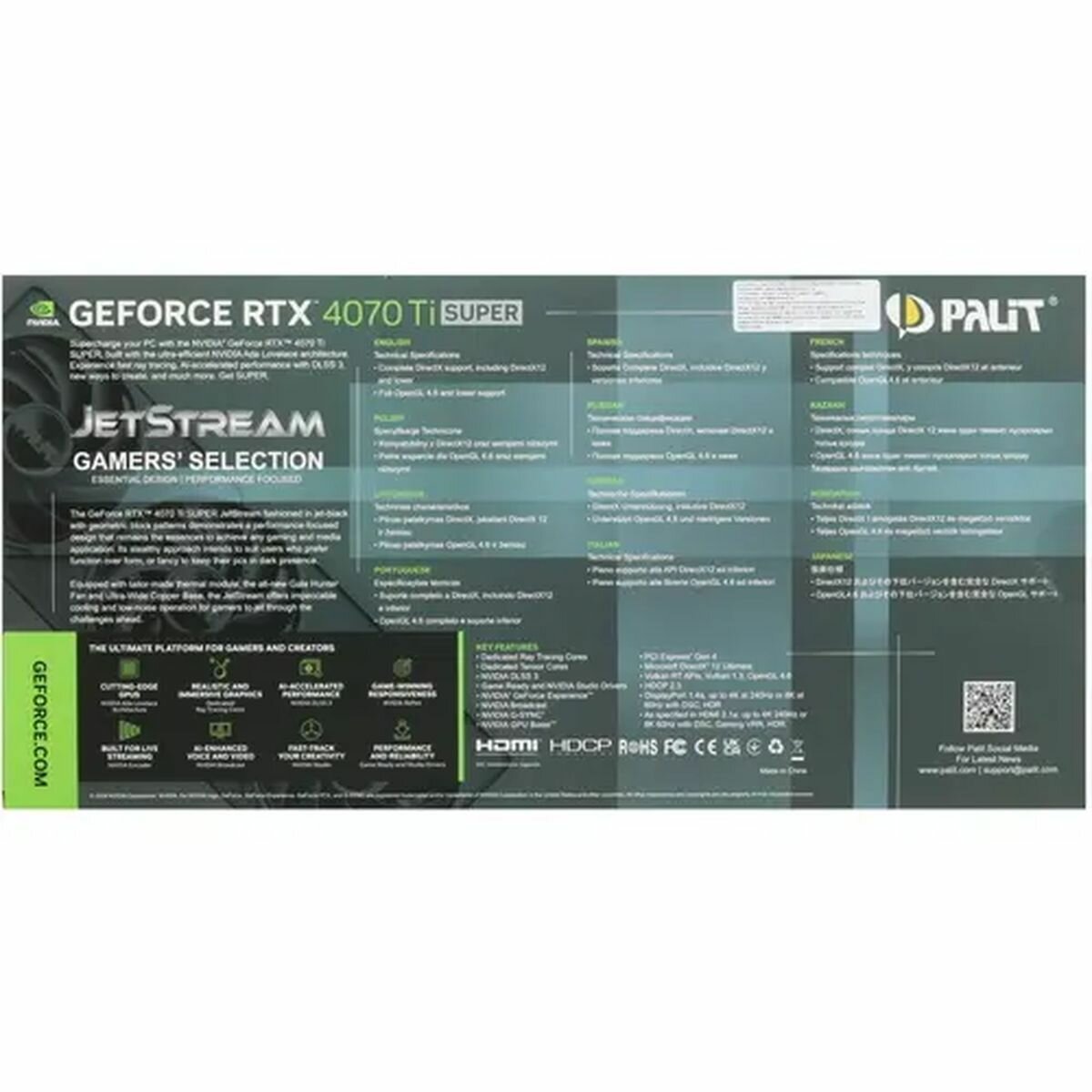 Видеокарта Palit PCI-E 4.0 RTX4070Ti SUPER JETSTREAM OC NVIDIA GeForce RTX 4070TI Super 16Gb 192bit GDDR6X 2340/10500 HDMIx1 DPx3 HDCP Ret